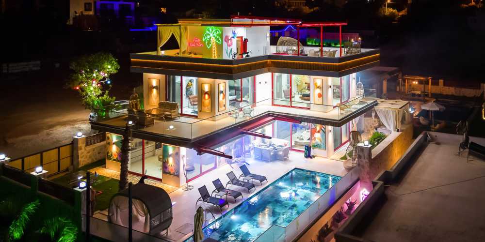 Geniş havuz terasında yer alan özel müzik sistemi ve disko ışık sistemiyle eğlenceli anlar yaşanabilir. ayrıca havuz terasında sinema sistemi bulunmakta villa içerisinde TV üzerinden Netflix ve Disney gibi platformlara erişim imkanı sunulmaktadır jakuzi fitness alanı bilardo masası ve masa tenisi gibi olanaklar sayesinde hem dinlenme hemde aktif vakit geçirme seçenekleri bir arada sunulur bahçeli yapısı ve ferah açık alanlarıyla tatil boyunca rahat bir atmosfer sağlar.