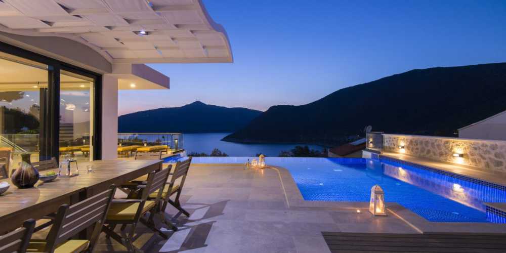 Kalkan merkez deniz manzaralı villa seçenekleri ve sosyal yaşama yakınlığıyla bölgenin en çok tercih edilen lokasyonları arasında yer alır. Geniş kapasitesi manzarası ve merkezi yapısıyla bu lüks villa konforlu ve keyifli bir villa kiralama deneyimi arayan 10 kişilik gruplar için ideal bir tatil alternatifi sunmaktadır.