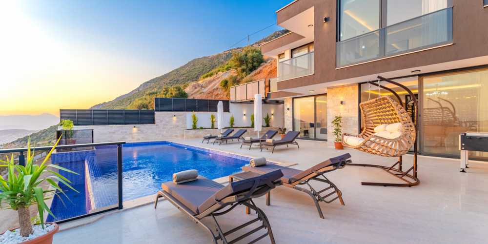 Doğa içerisinde konumlanan bu deniz manzaralı kiralık villa sunduğu imkanlar ve geniş kapasitesiyle Kalkan bölgesinde villa kiralama planı yapan misafirler için güçlü bir alternatif oluşturmaktadır.