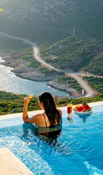 Modern mimarisiyle dikkat çeken bu özel villa, sonsuzluk havuzu ve korunaklı teras alanı sayesinde mahremiyetine önem veren misafirler için mükemmel bir seçenektir. Özellikle balayı çiftleri için romantik bir atmosfer sunan villamızda, her an manzaranın tadını çıkarabilirsiniz.
