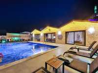 Geniş bahçesi sayesinde çocuklu aileler için oldukça uygundur ve huzurlu bir tatil atmosferi sunar. Taş ve ahşap detaylar villa içinde zarif bir şekilde harmanlanarak estetik bir görünüm oluşturmuştur. Özel muhafazakar yüzme havuzumuz, korunaklı olup, havuz terasında eğlenceli bir salıncak, çocuk oyun parkı, masa tenisi yer almaktadır.