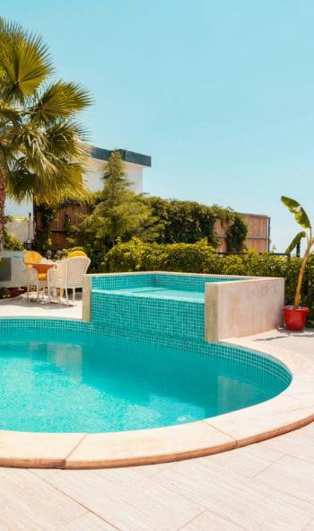 Salon kısmı ferah bir oturma alanına sahip olup, doğrudan havuz terasına açılmaktadır. Böylece iç ve dış yaşam alanları bir bütün olarak kullanılabilir.