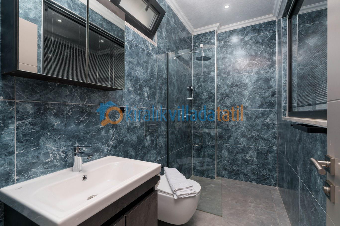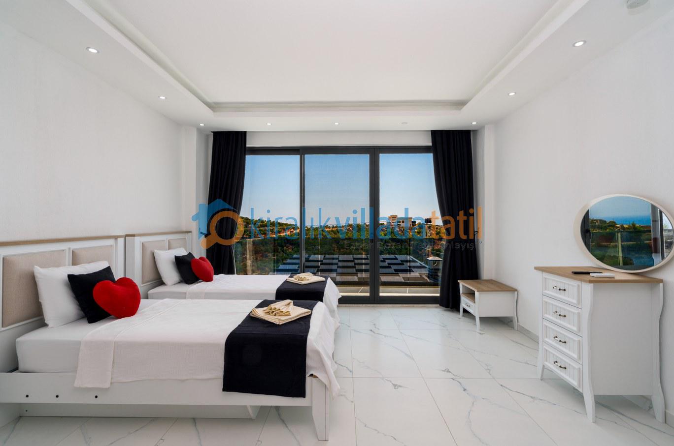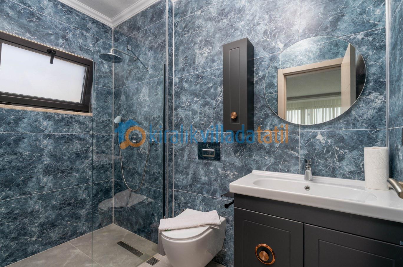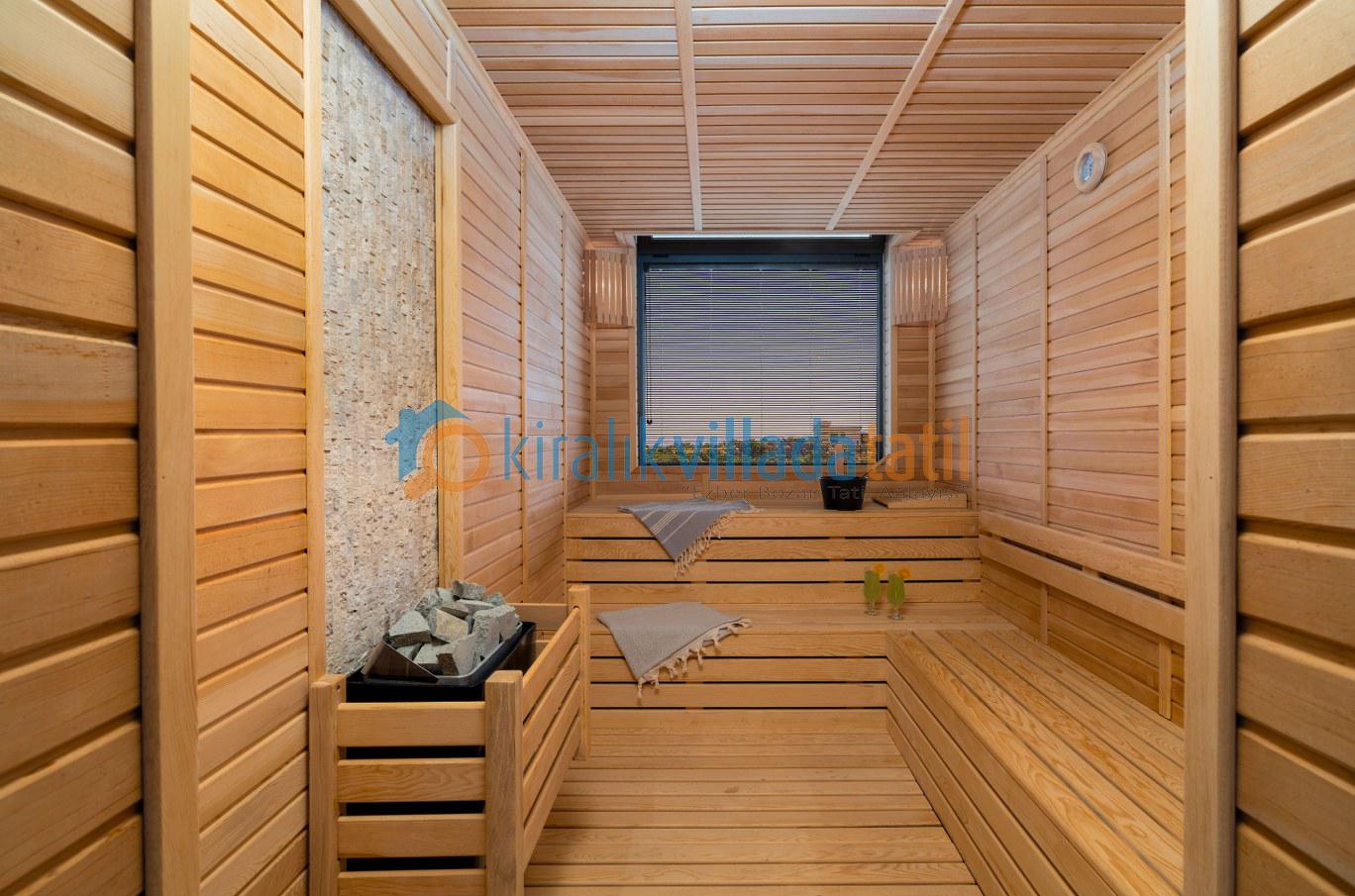 Yatak odaları konfor ve rahatlık düşünülerek hazırlanmış olup, odalardan birinde bulunan jakuzi misafirlere günün yorgunluğunu atabilecekleri özel bir dinlenme alanı sunmaktadır. Ayrıca villada bulunan sauna ve hamam konseptinde tasarlanmış banyo alanı, tatilinizi daha da keyifli hale getiren lüks detaylar arasında yer almaktadır. Bu özellikleri sayesinde villa, hem dinlenmek hem de konforlu bir tatil geçirmek isteyen misafirler için ayrıcalıklı bir ortam sunar. Deniz manzarası eşliğinde huzurlu bir atmosfer sunan villamız, Kalkan merkeze araç ile yaklaşık 10 dakika sürüş mesafesinde yer almaktadır. Bu sayede hem sakin ve doğa ile iç içe bir konumda tatilinizi geçirebilir hem de kısa bir yolculukla Kalkan’ın restoranlarına, plajlarına ve eğlence noktalarına kolayca ulaşabilirsiniz.
