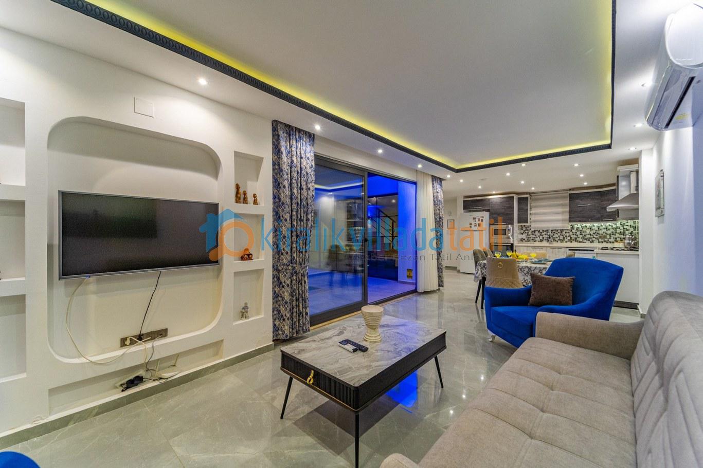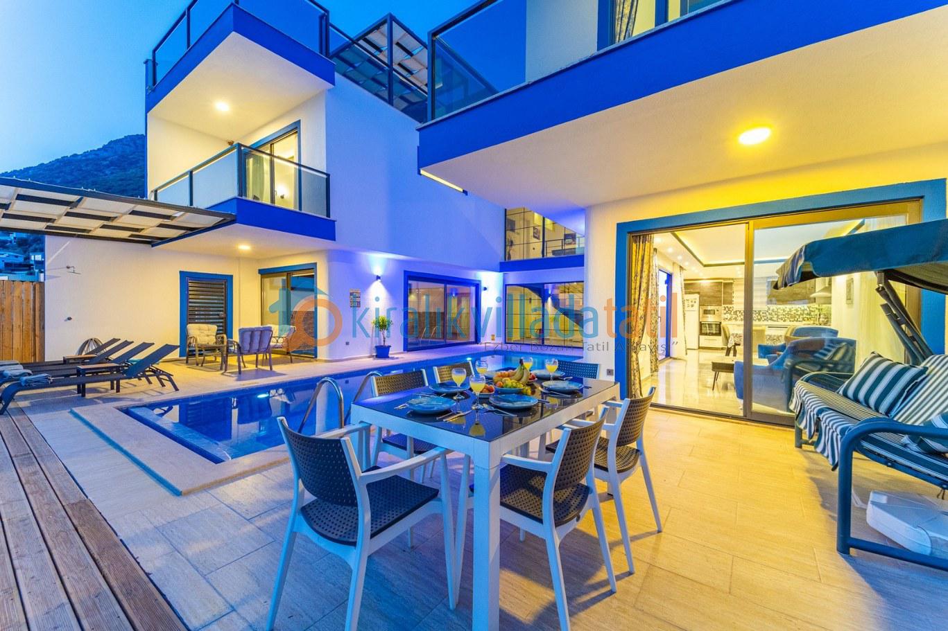 Panoramik deniz manzarası, zengin sosyal donatıları, dört mevsim kullanıma uygun ısıtmalı kapalı havuzu, Türk hamamı, saunası ve eğlence alanlarıyla Kalkan’da ayrıcalıklı bir muhafazakar kiralık villa arayan misafirler için prestijli bir seçenek sunan bu özel villa, konum ve konfor avantajını bir arada yaşamak isteyenler için ideal bir villa kiralama alternatifidir.