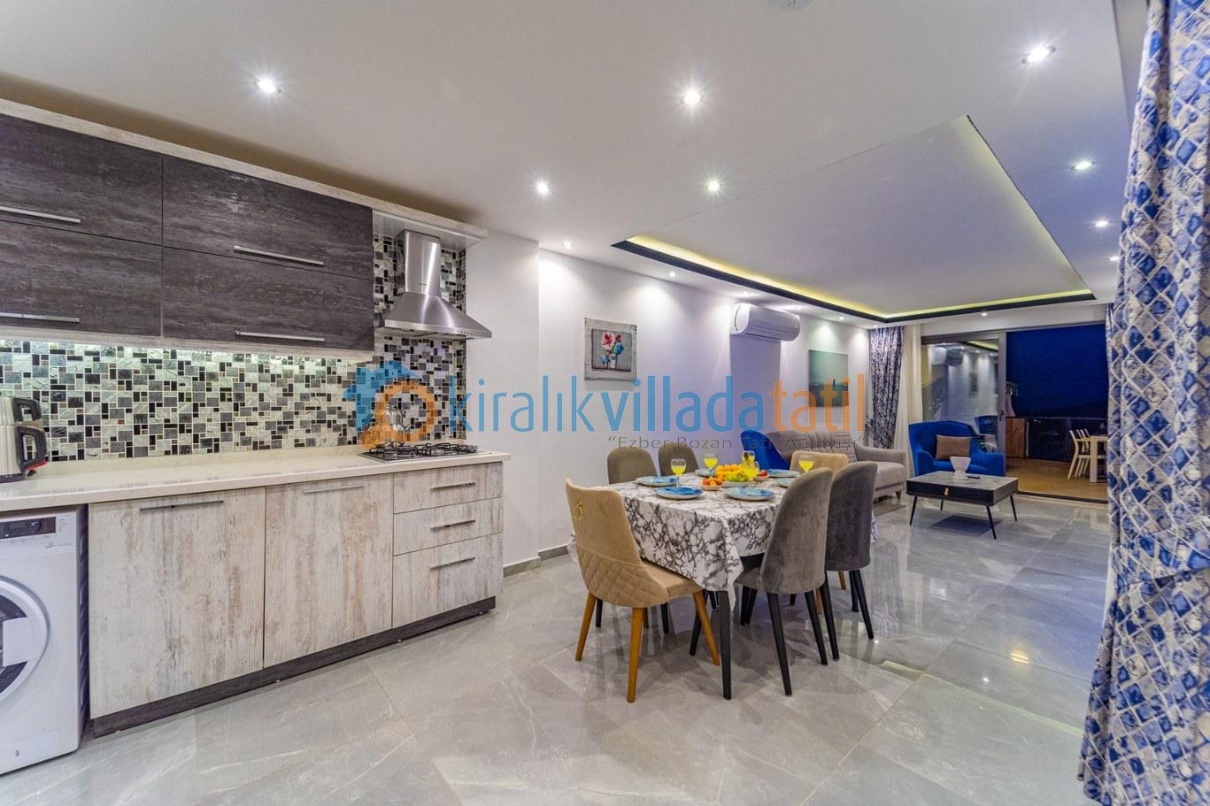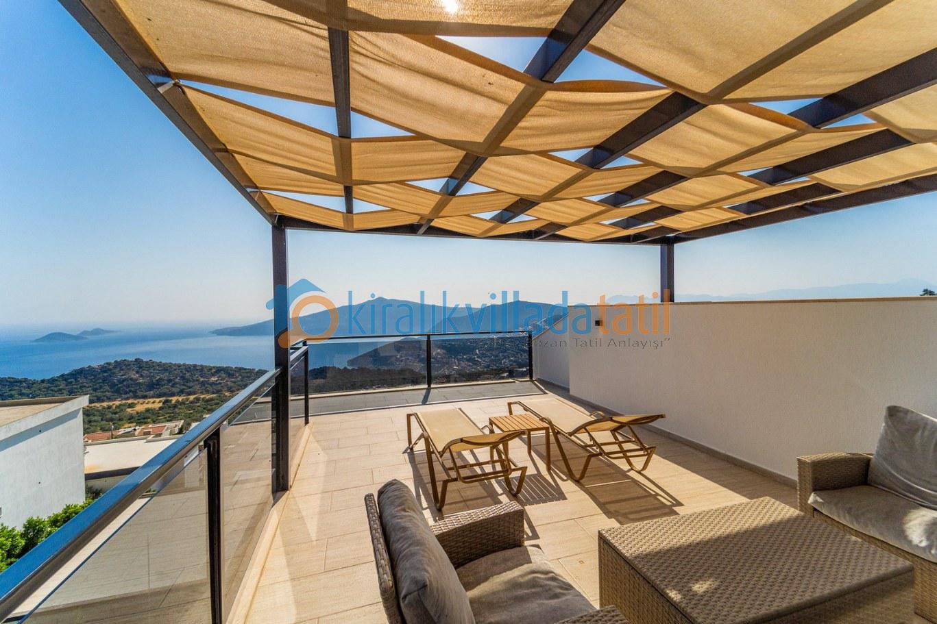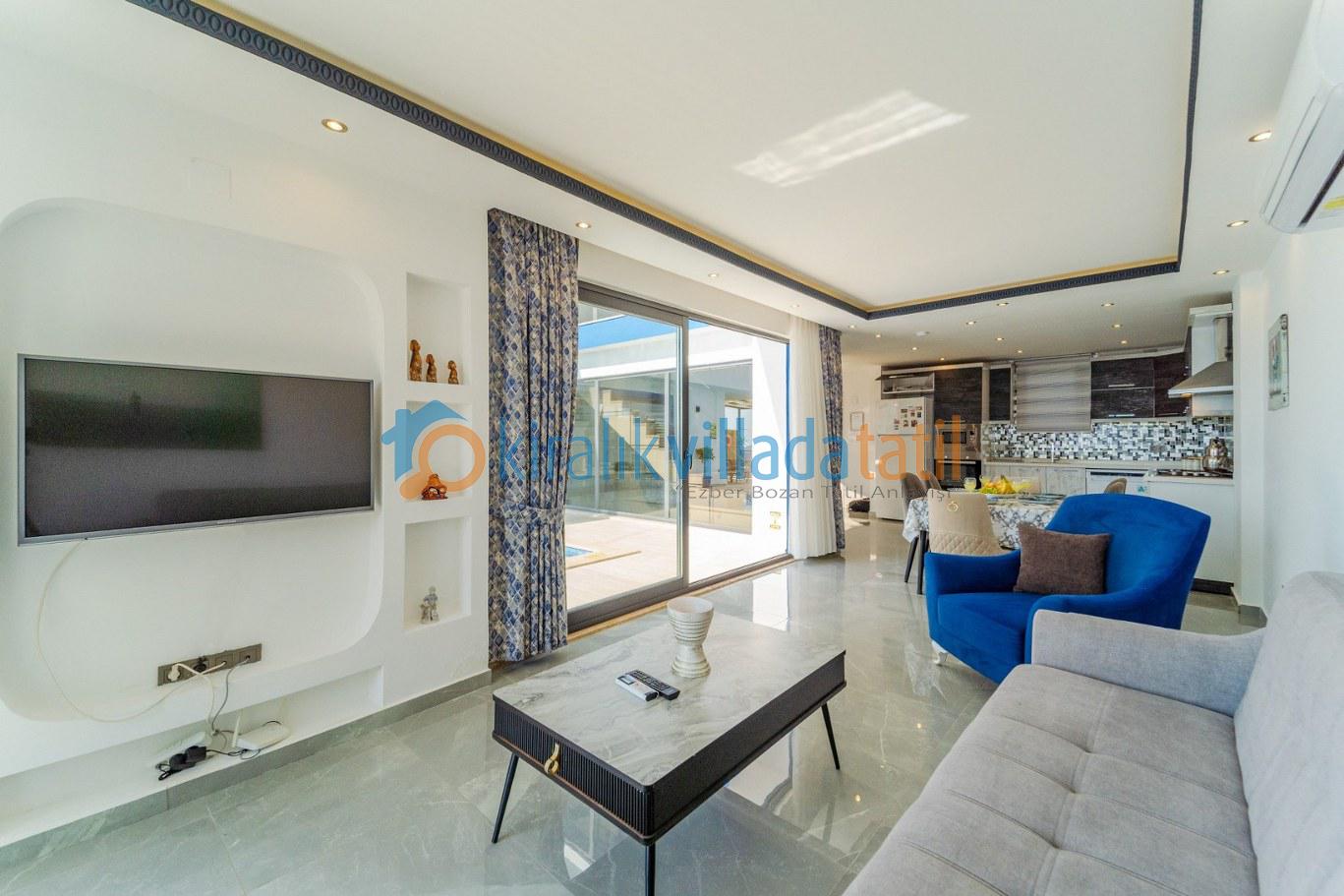 Bu ilan ait Detaylı açıklama ve bilinmesi gereken detaylarKalkan Kördere’nin ayrıcalıklı konumunda yer alan bu kiralık villa, panoramik deniz manzarasına hâkim mimarisi, yüksek konfor standartları ve lüks detaylarıyla üst segment bir villa kiralama deneyimi sunmaktadır. 3 yatak odasıyla toplam 7 kişilik konaklama kapasitesine sahip olan villa; geniş aileler ve arkadaş grupları için hem estetik hem de fonksiyonel bir yaşam alanı oluşturur. Modern ve şık tasarıma sahip iç mekânları, gün boyu kesintisiz Akdeniz manzarasıyla bütünleşen ferah yaşam alanlarıyla tatilinizi benzersiz bir atmosfere dönüştürür.