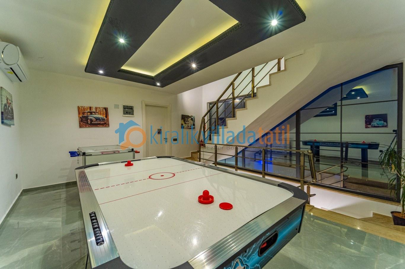 Deniz manzarasına açılan süit yatak odalarının ikisinde bulunan jakuziler, konforu bir üst seviyeye taşırken; villada yer alan ısıtmalı kapalı havuz, Türk hamamı ve sauna dört mevsim kesintisiz tatil imkânı sunar. Eğlenceli vakit geçirmek isteyen misafirler için özel olarak konumlandırılmış langırt, hava hokeyi ve langırt oyun alanları tatil sürecine dinamik bir deneyim katar.
