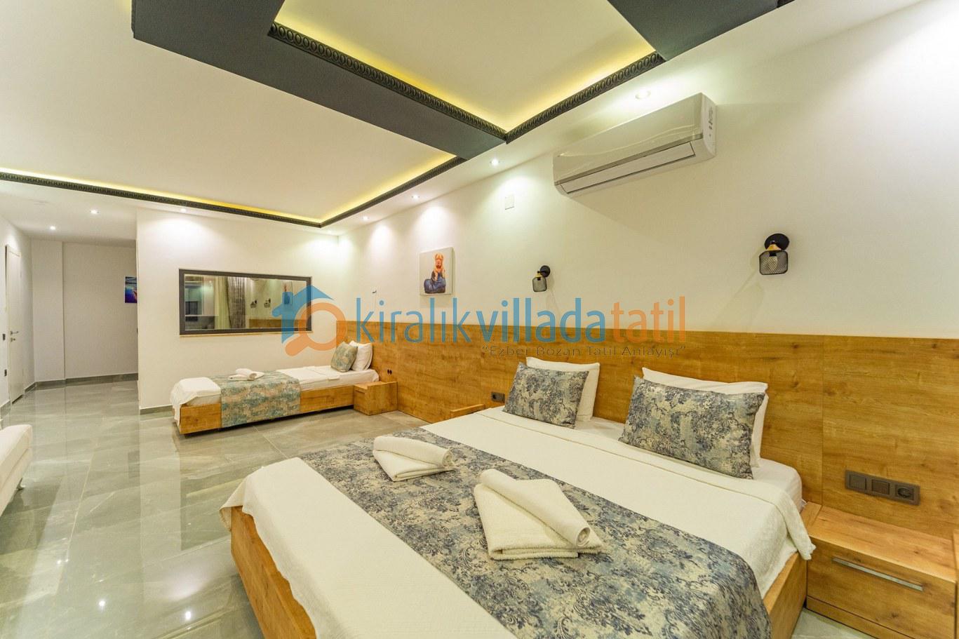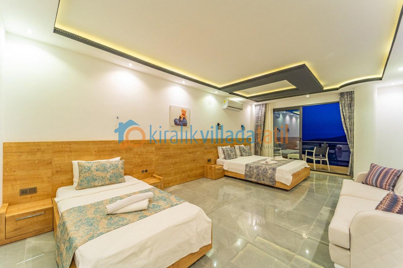 3. Yatak Odası: 1 çift kişilik yatak + 1 tek kişilik yatak, klima, banyo & WC