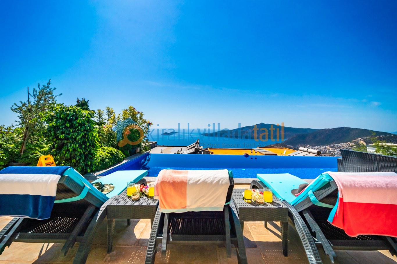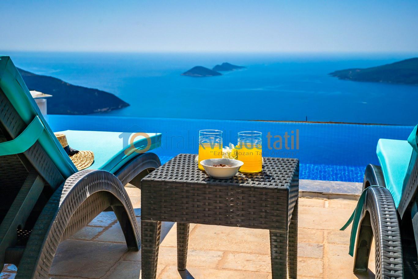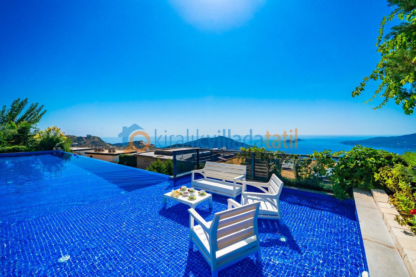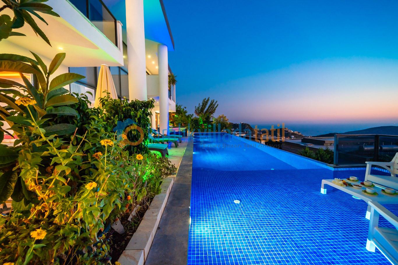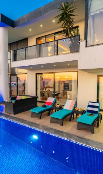 Geniş havuz terası, şezlong takımı, oturma grubu ve barbekü alanıyla donatılmıştır. Gün boyunca Akdeniz’in büyüleyici manzarasına karşı güneşin tadını çıkarabilir, akşam saatlerinde Kalkan’ın eşsiz gün batımını sevdiklerinizle birlikte izleyebilirsiniz.