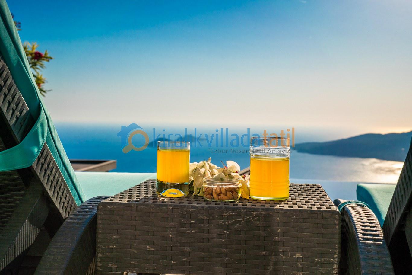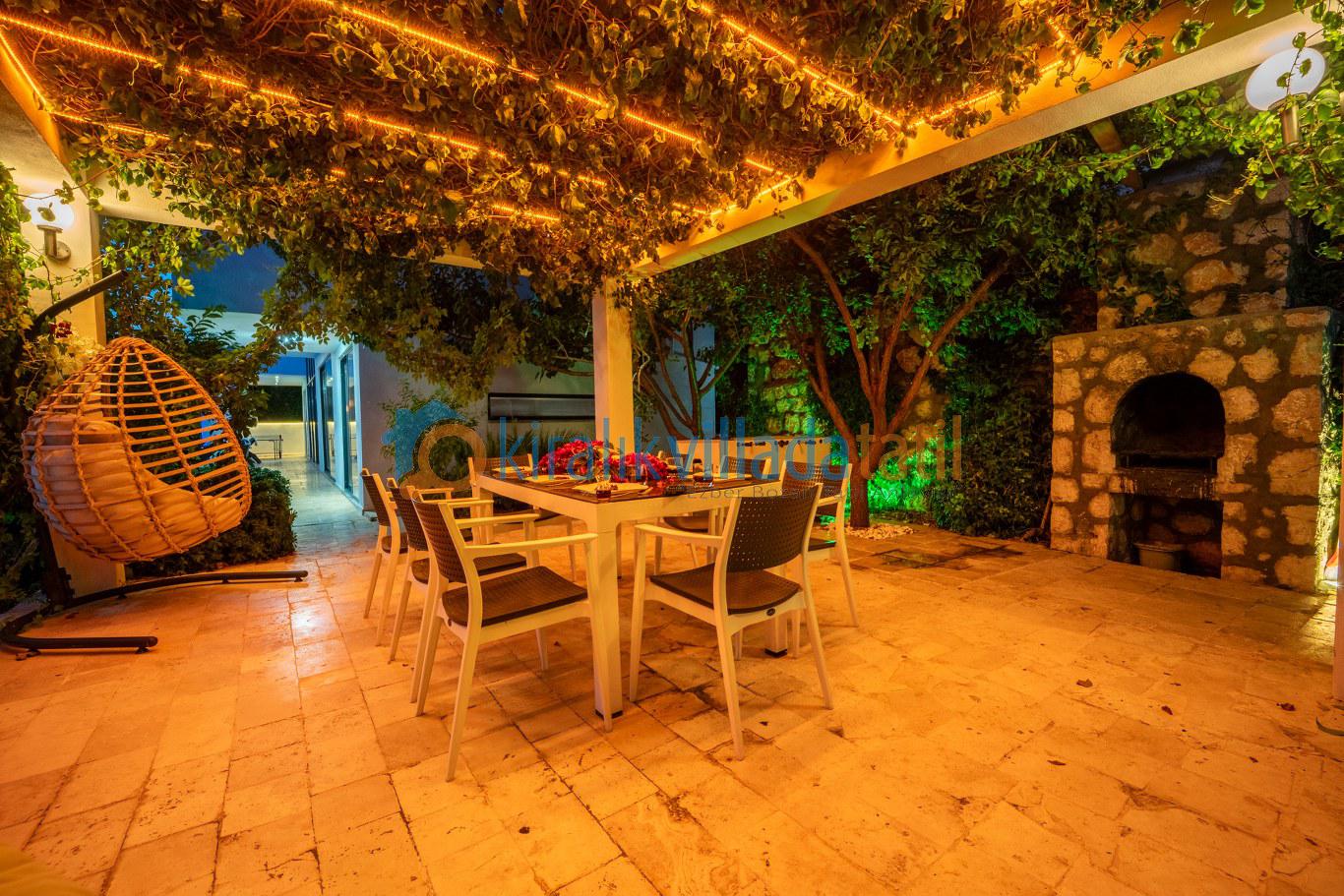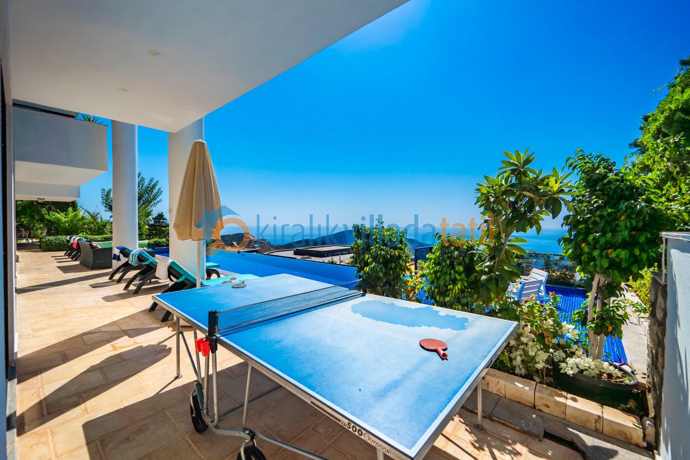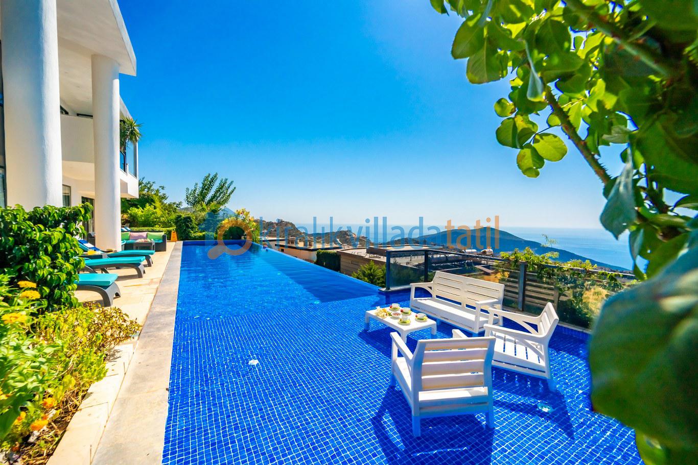 Geniş havuz terası, şezlong takımı, oturma grubu ve barbekü alanıyla donatılmıştır. Gün boyunca Akdeniz’in büyüleyici manzarasına karşı güneşin tadını çıkarabilir, akşam saatlerinde Kalkan’ın eşsiz gün batımını sevdiklerinizle birlikte izleyebilirsiniz.