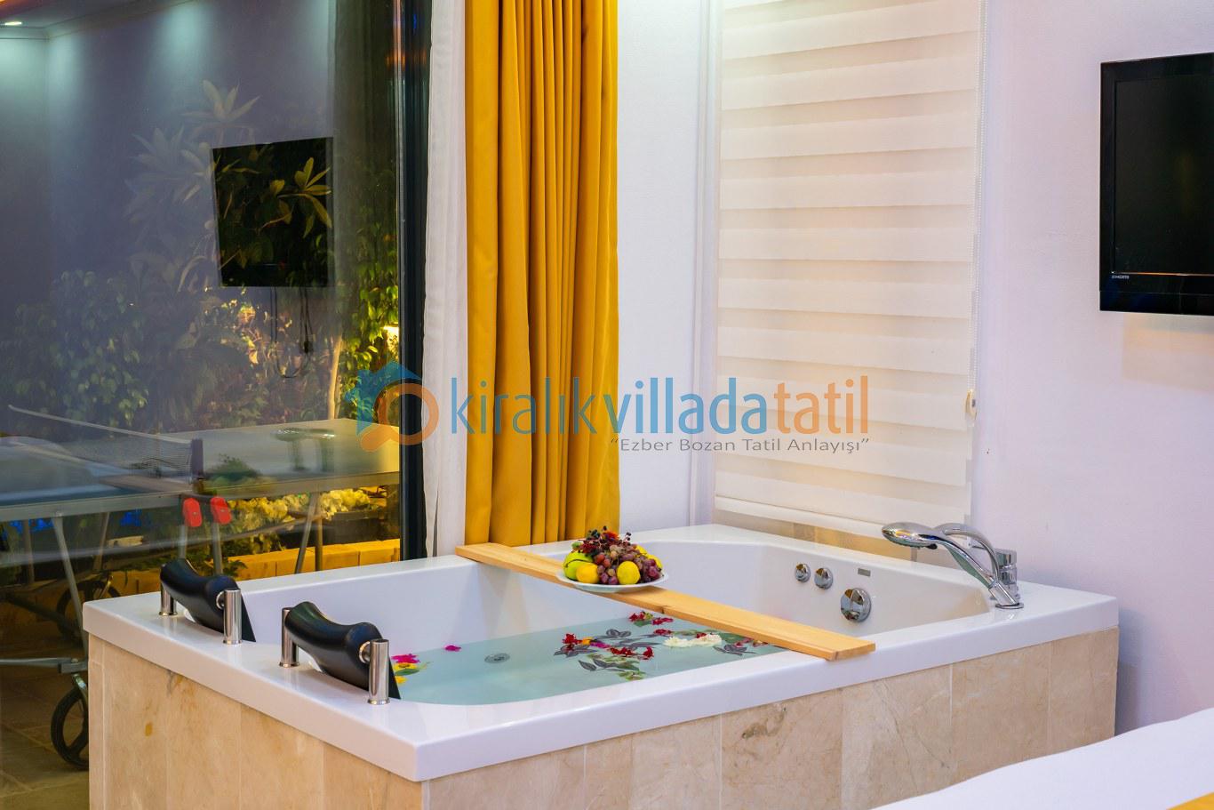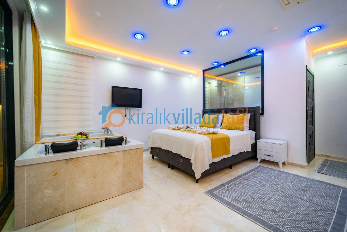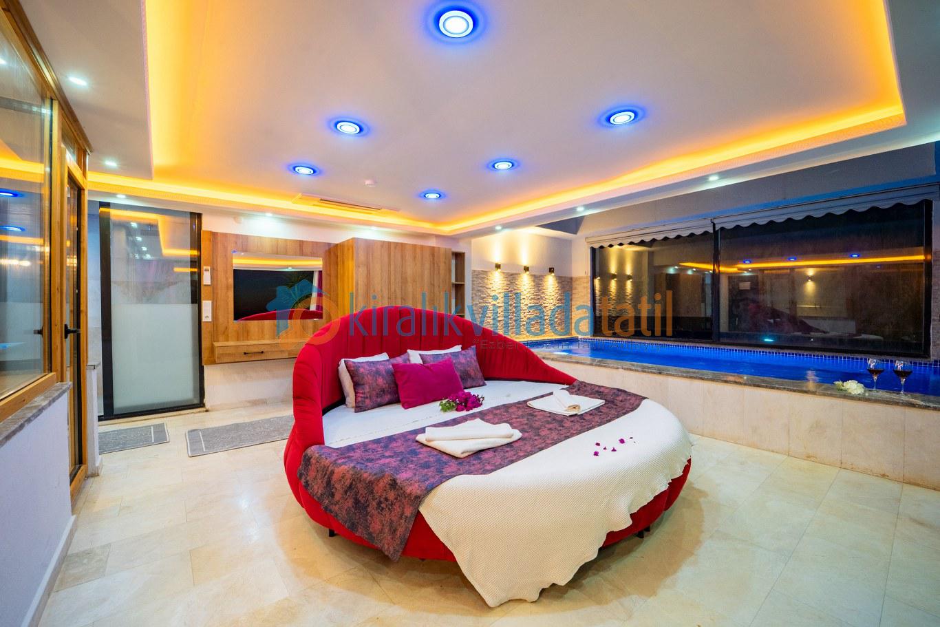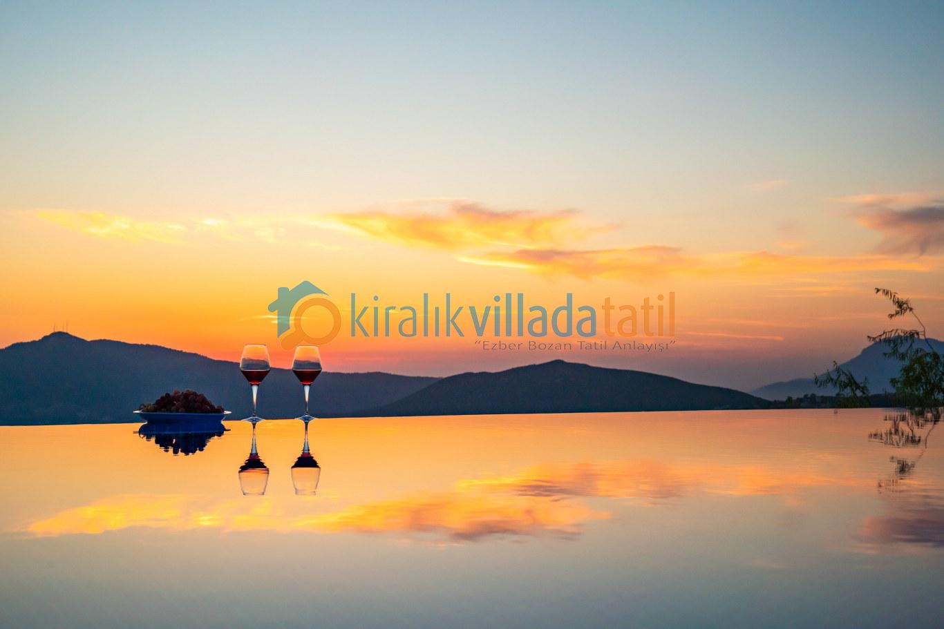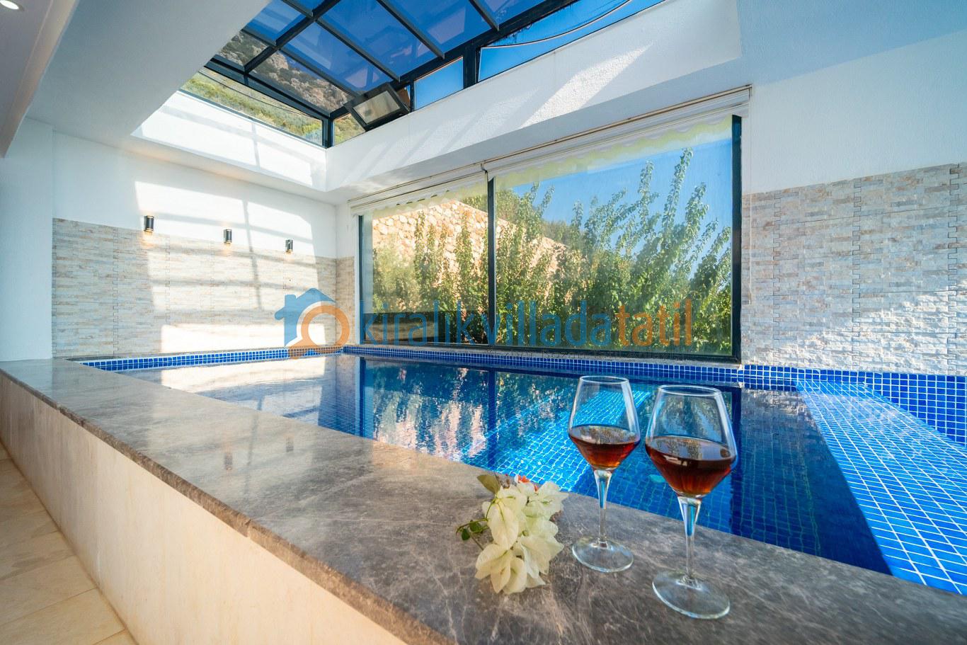 Villanın en öne çıkan özelliği, dört mevsim kullanıma uygun **kapalı ısıtmalı havuzu** ve **sonsuz maviliğe uzanan panoramik deniz manzarasıdır**. Bu özellik, özellikle balayı çiftleri, muhafazakâr aileler ve kış döneminde tatil planlayan misafirler için büyük avantaj sunar.