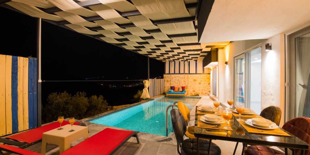 Kalkan Kördere bölgesinde yer alan bu seçenek manzarası ve sunduğu donanımlarla villa kiralama sürecinde öne çıkar. Deniz manzaralı yapısı jakuzili ve saunalı donanımıyla kiralık villa balayı villa korunaklı villa ve muhafazakar villa arayışında olan çiftler için sakin ve güvenli bir alternatif sunar.