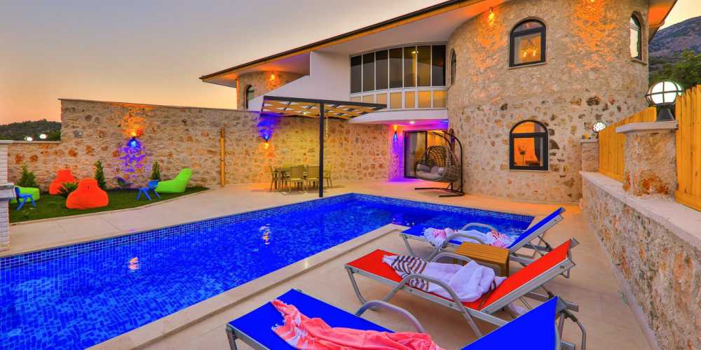 Villanın havuz terasında küçük bir yeşil alan yemek masası perguleli oturma grubu salıncak barbekü alanı ve şezlonglar yer almaktadır. göz alıcı doğa manzarası eşliğinde açık alanda keyifli vakit geçirebilir sevdiklerinizle birlikte unutulmaz anlar yaşayabilirsiniz. Korunaklı villa yapısıyla dışarıdan görünmeyen özel alan sunması muhafazakar villa arayışında olan misafirler için önemli bir avantajdır. mahremiyetine önem veren aileler için rahat ve güvenli bir tatil ortamı sağlar.