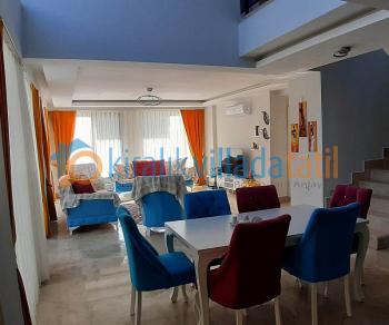 Detayları : Oturma grubu, LCD TV, Klima, 6 kişilik yemek masası, havuz terasına geçiş ve WC/Lavabo mevcuttur