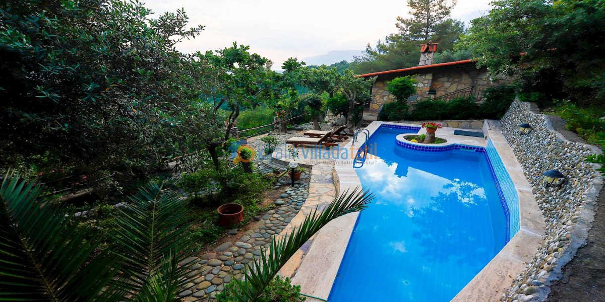 Dış alanda özel yüzme havuzu bulunmaktadır. Havuz ölçüleri 13 m x 3 m, derinliği ise 1,50 m’dir. Bahçe alanında şezlonglar, hamak ve güneş şemsiyesi yer alır. Havuz alanı mahremiyete uygun şekilde düzenlenmiş olup villamız korunaklı ve muhafazakâr villa konseptine uygundur. Bu sayede ailenizle birlikte tatilinizi daha rahat, daha özgür ve dış gözlerden uzak bir şekilde geçirebilirsiniz.