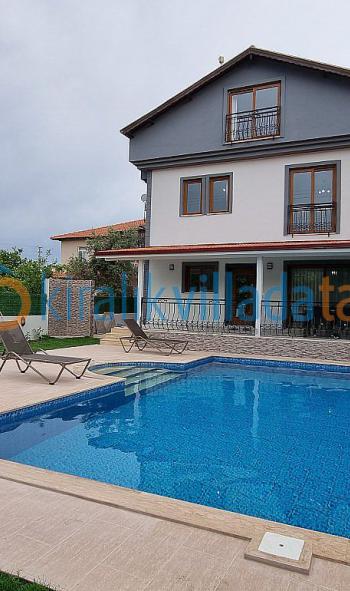 Villamızda 2 adet çift kişilik yatak ve 4 adet tek kişilik yatak isteğe (kişi sayısına) göre 2 adet daha tek kişilik yatak bulunmaktadır. Villamız modern American mutfak olup içerisinde ihtiyacınız olabilecek Bulaşık Makinesi, Buzdolabı, Ankastre Fırın, Mikrodalga Fırın, Ankastre 4'lü Ocak, Su Isıtıcısı, Ekmek Kızartma Makinesi Tencere ve Tava Takımı Yemek Takımı, Kaşık Çatal Bıçak Takımı, Bardak Takımı, Yemek Masası, Sandalyeler, Çay makinesi vb. her şey mevcuttur. Villamızın bahçe kısmında ise masa, sandalye, oturma grupları, şezlong bulunmaktadır.
