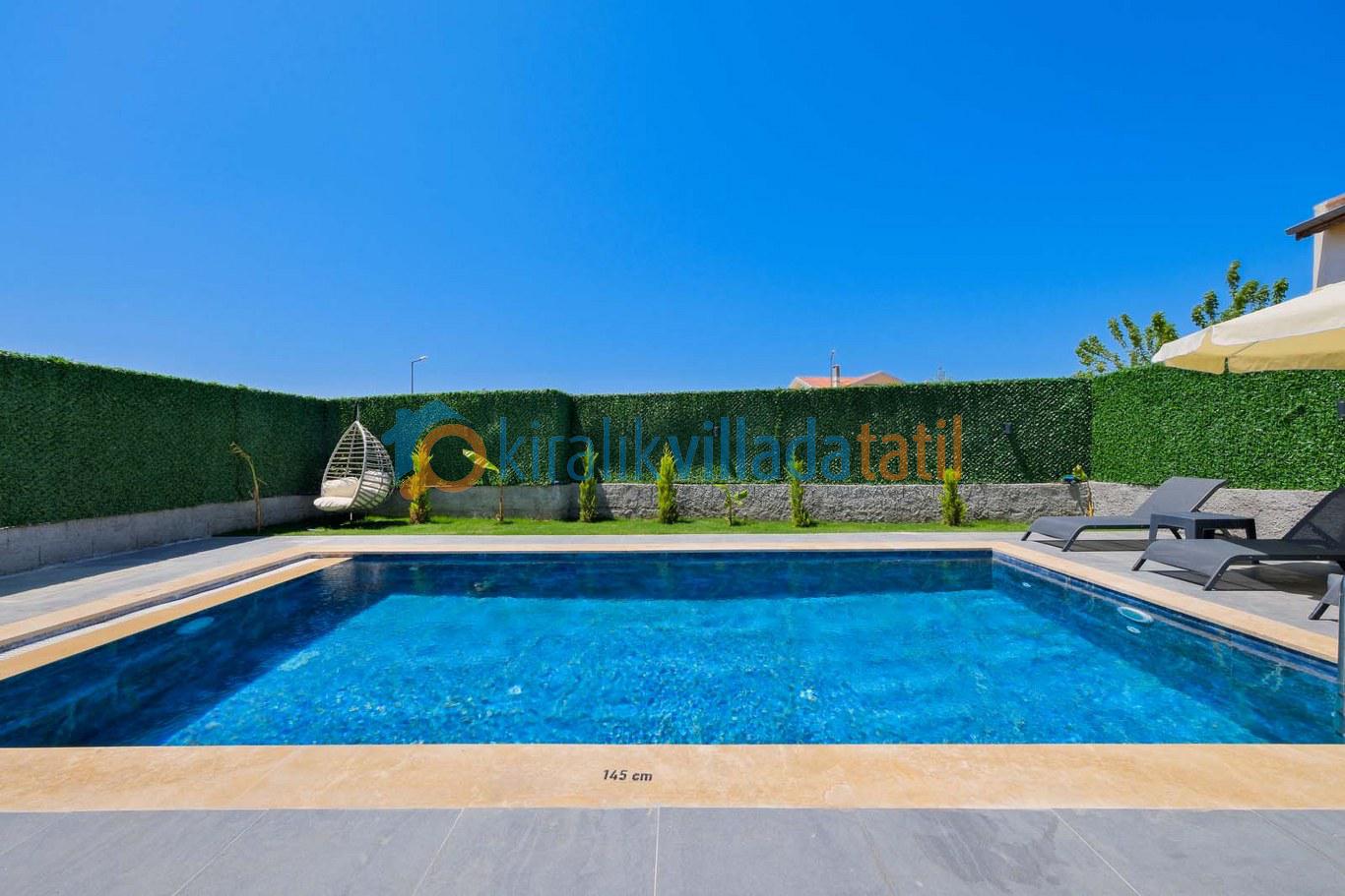 Modern mimari konseptle tasarlanan iç mekânlarda; geniş ve ferah yaşam alanları, işlevsel mutfak düzeni ve konforu ön plana çıkaran detaylar dikkat çeker. Tamamen size ait olan özel yüzme havuzu, günün her anını keyfe dönüştürürken; jakuzi alanı ve dinlenme salıncağı tatil süresince maksimum rahatlama imkânı sunar. Hem estetik hem de kullanım kolaylığı sağlayan dış mekân planlaması sayesinde villada geçirilen her an ayrıcalıklı bir deneyime dönüşür.
