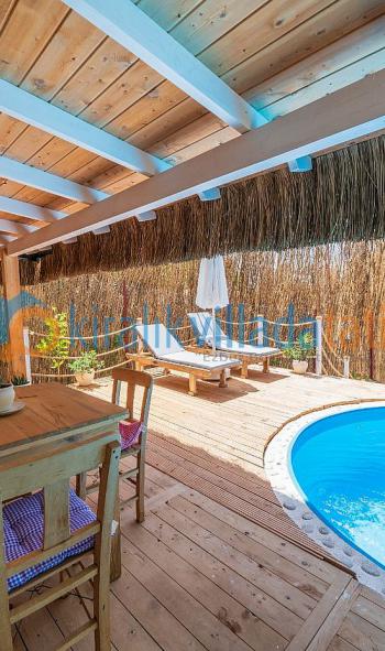 Kendine ait bahçesi, korunaklı havuzu, baçesinde jakuzusiolan tatil evi teras, mutfak, salon(yatak olabilecek iki ayrı sedirli), yatakodası, wc/duş dan oluşmaktadır.