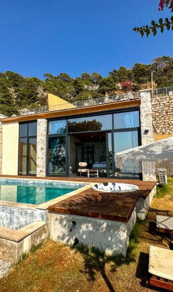 Havuz Terası: Deniz manzaralı terasta özel yüzme havuzu, jakuzi, 2 adet şezlong, güneş şemsiyesi, 2 adet koltuk ve sehpa bulunmaktadır. Villada mangal veya barbekü imkanı bulunmamaktadır.