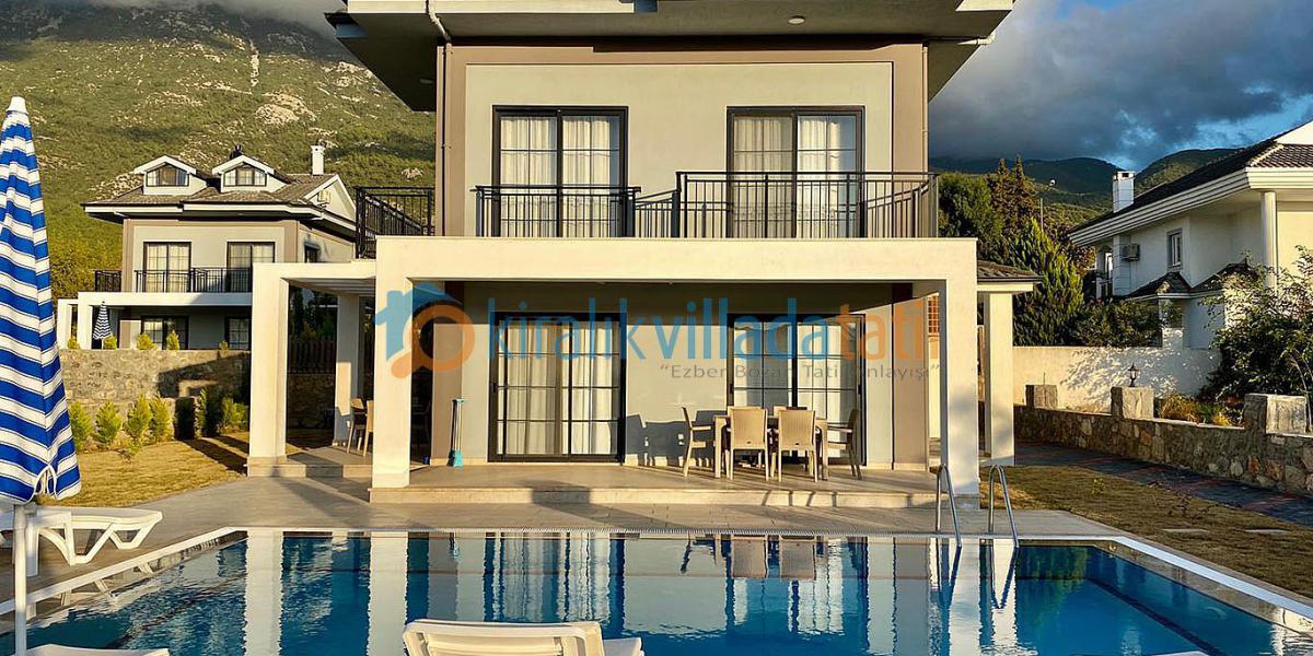 Doğa manzarasına sahip olan villa, sessiz ve sakin bir çevrede konumlanmış olup huzurlu bir tatil geçirmek isteyen misafirler için uygun bir ortam sağlar. Özenle dekore edilmiş iç mekânlarıyla konforlu bir konaklama sunan yapı, Fethiye’de kiralık villa arayışında olan misafirler tarafından tercih edilebilecek niteliktedir. Doğa içerisinde yer alması, tatil süresince sakinlik ve ferahlık hissini ön planda tutar.