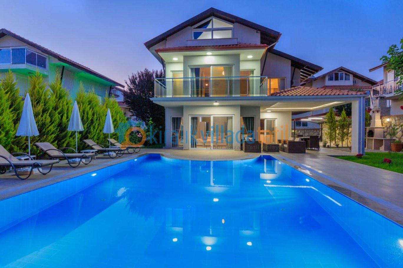 Bu ilan ait Detaylı açıklama ve bilinmesi gereken detaylarFethiye’nin prestijli yerleşim alanlarından Ovacık mevkiinde konumlanan bu özel villa, modern mimarisi, geniş havuz terası ve ferah yeşil alanlarıyla ayrıcalıklı bir kiralık villa deneyimi sunar. Dört yatak odalı planlamasıyla 8 kişilik konaklama kapasitesine sahip olan villa; kalabalık aileler ve birlikte tatil yapan gruplar için ideal bir yaşam alanı oluşturur.