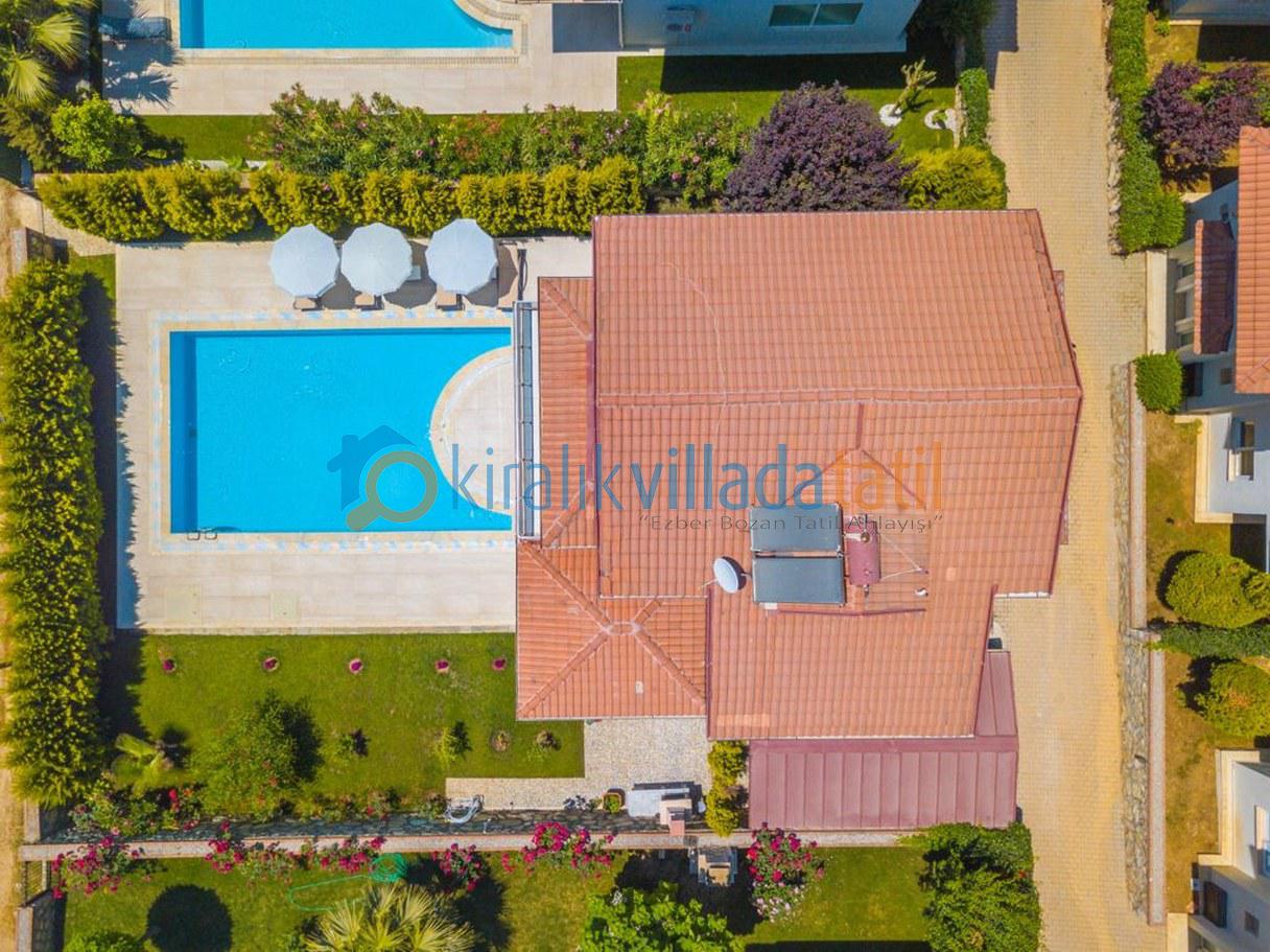 Özel yüzme havuzu, geniş güneşlenme alanı ve bahçe kullanımı sayesinde gün boyu konforlu ve özgür bir tatil atmosferi sağlanır. Modern çizgilerle dekore edilen iç mekânlar; uzun süreli konaklamalarda dahi rahatlık sunacak şekilde fonksiyonel ve ferah olarak tasarlanmıştır. Merkeze yakın konumu sayesinde hem sakin bir ortam hem de sosyal alanlara hızlı erişim avantajı bir arada sunulur.
