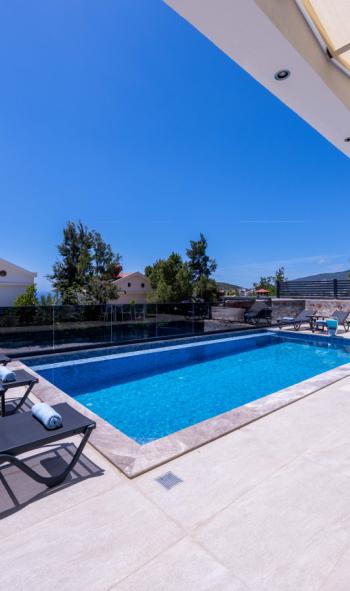 Villanın dış kısmında yer alan özel yüzme havuzu, güneşlenme terası ve deniz manzarasına karşı keyifli vakit geçirebileceğiniz veranda alanı, tatilinizin en keyifli anlarına ev sahipliği yapar. Sabah kahvenizi Akdeniz’in turkuaz sularına karşı yudumlayabilir, akşamları ise gün batımında sevdiklerinizle huzurlu sohbetler edebilirsiniz.
