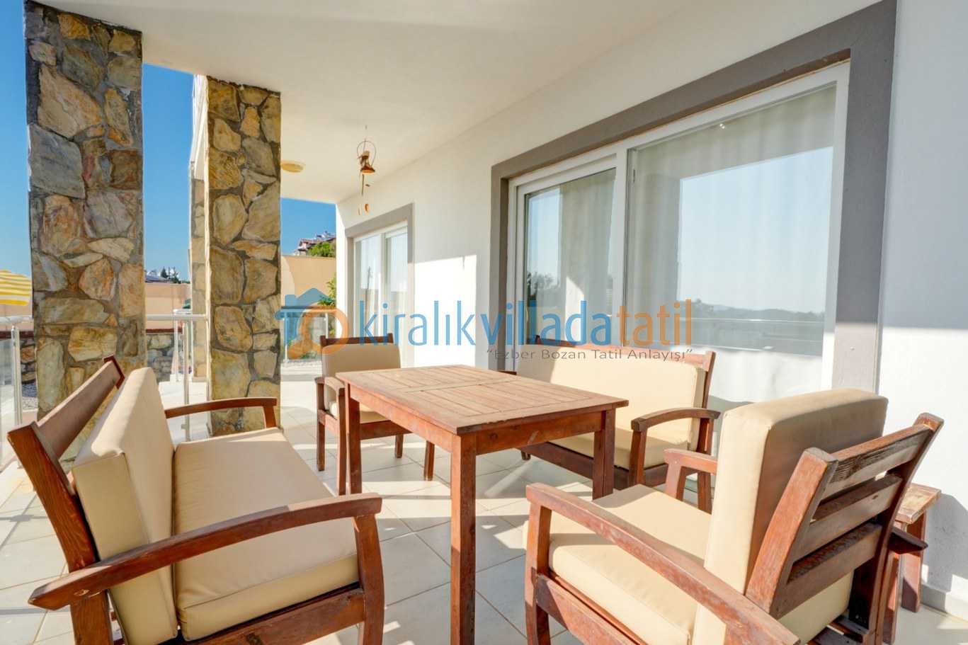 Dış alan kullanımında ise geniş bahçe ve ferah teras bölümü dikkat çeker gün boyunca açık havada vakit geçirmek isteyen misafirler için oldukça keyifli bir ortam sunar ayrıca tamamen size ait özel yüzme havuzu ile tatilinizi daha özgür ve rahat bir şekilde geçirebilirsiniz