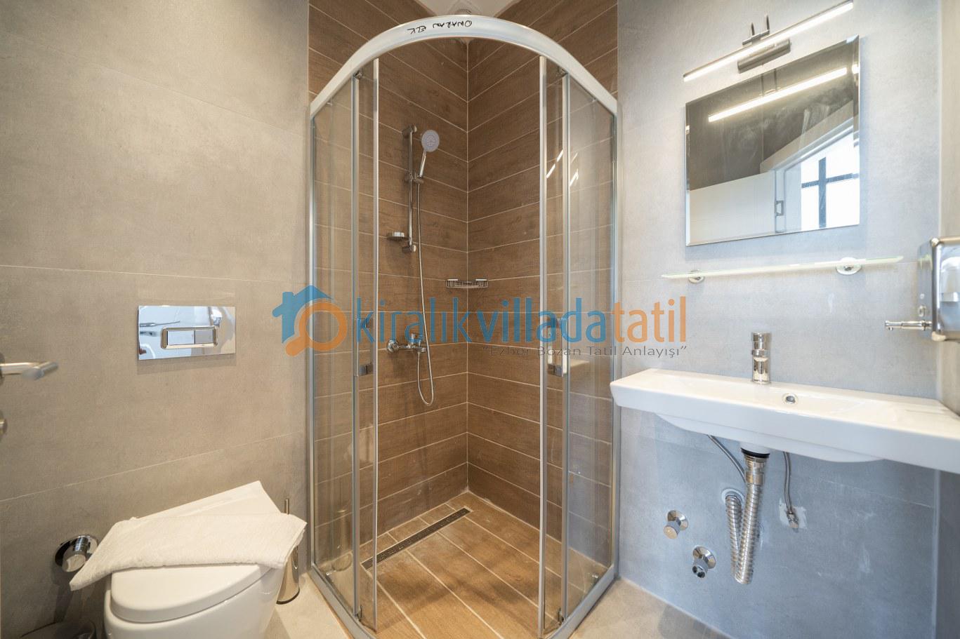Yerleşim yoğunluğundan uzak konumu ile öne çıkan bu kiralık villa, doğa içinde sessizlik ve özgürlük arayan misafirler için yüksek standartlı bir konaklama deneyimi sunmaktadır. Korunmuş maki bitki örtüsü, temiz hava ve kesintisiz manzara eşliğinde geçireceğiniz tatil süresince bölgenin doğal atmosferini tüm açıklığıyla hissedebilirsiniz.