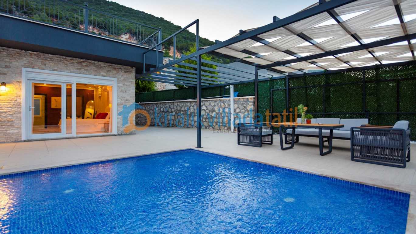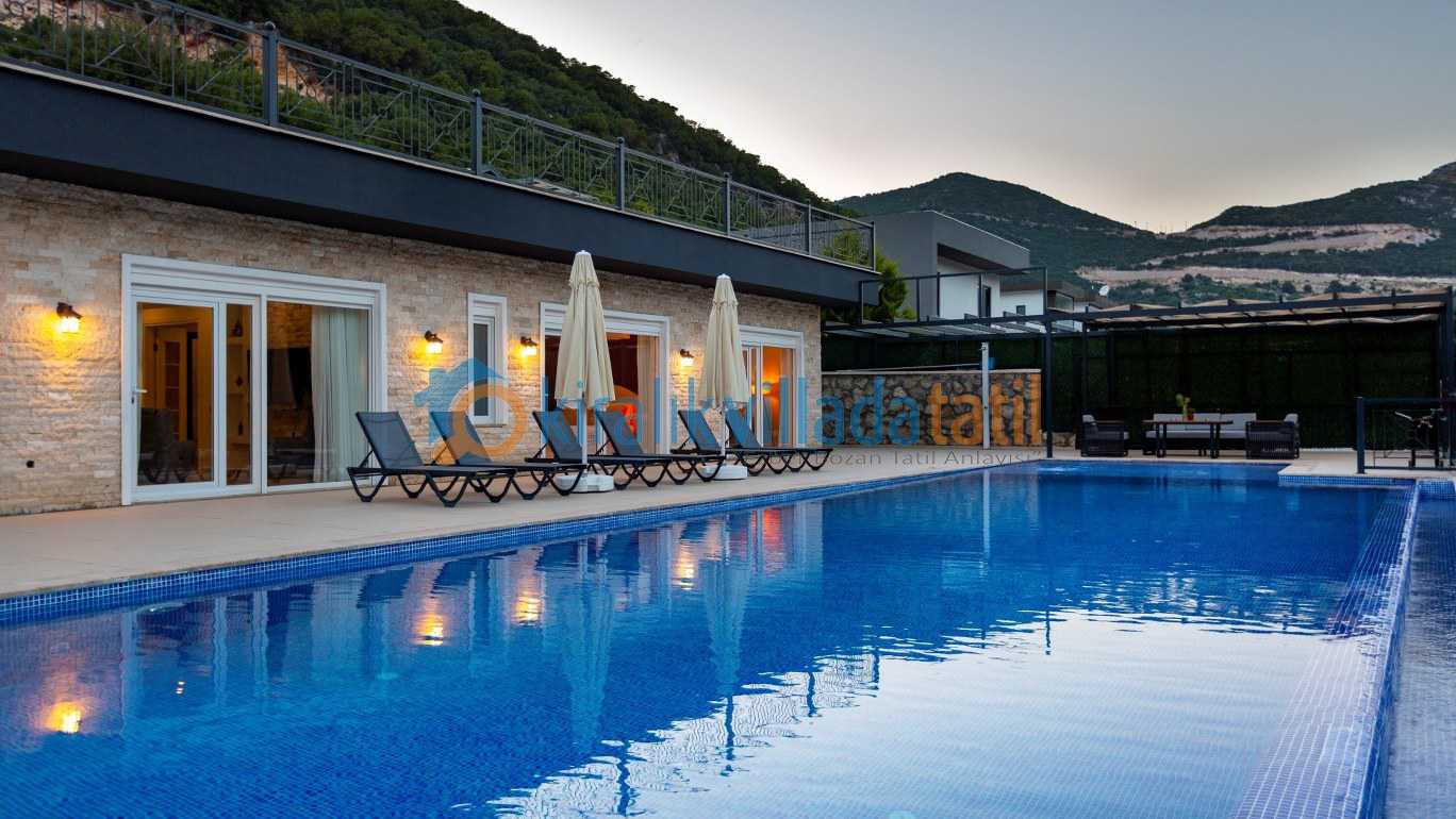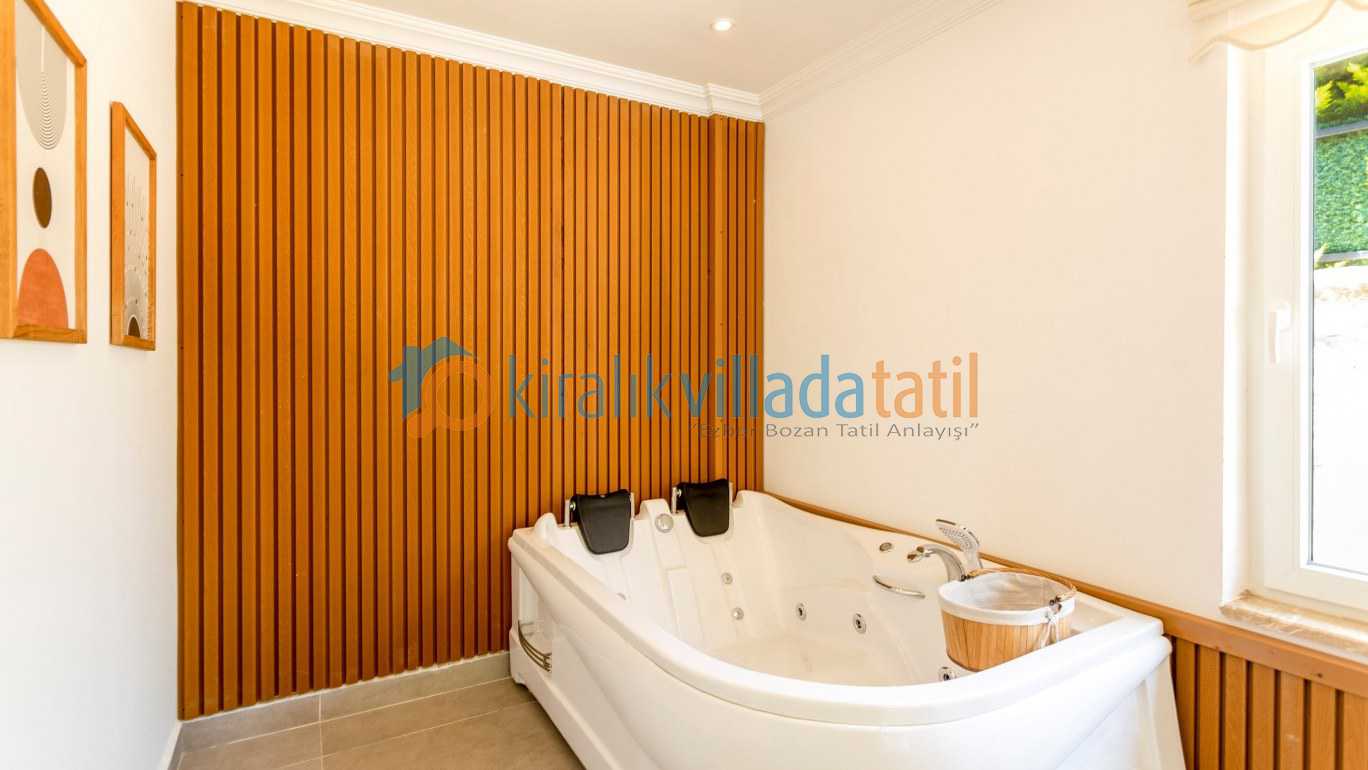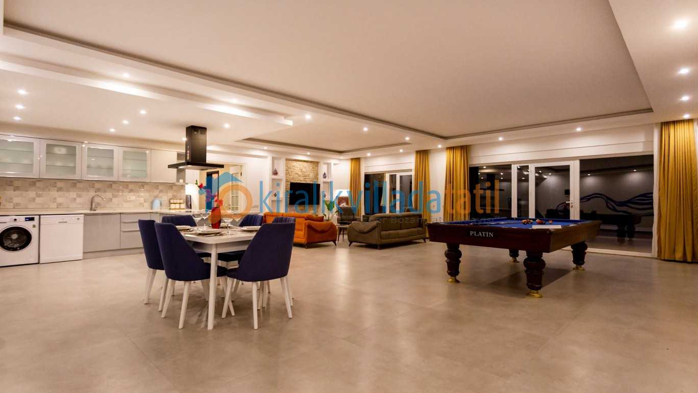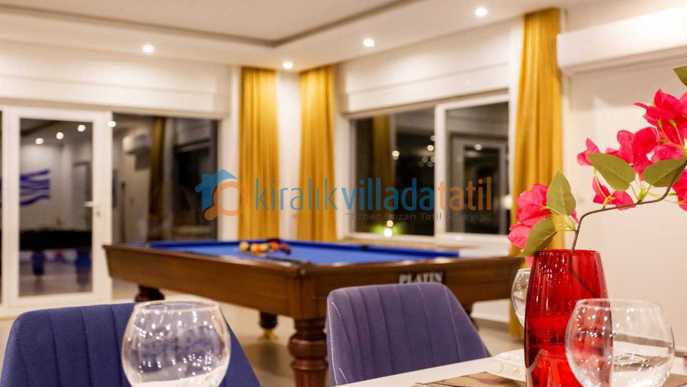 Yarı olimpik ölçülere yakın özel yüzme havuzu, gün boyu keyifli vakit geçirmenize olanak tanırken jakuzili özel spa alanı ve bilardo masası gibi detaylar tatilinize ekstra konfor ve eğlence katıyor İç mekânda modern ve kullanışlı bir dizayn tercih edilmiş; tam donanımlı mutfak, konforlu yataklar ve ferah yaşam alanları ile misafirlerin ihtiyaçları düşünülmüş.