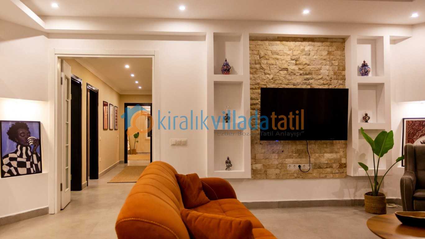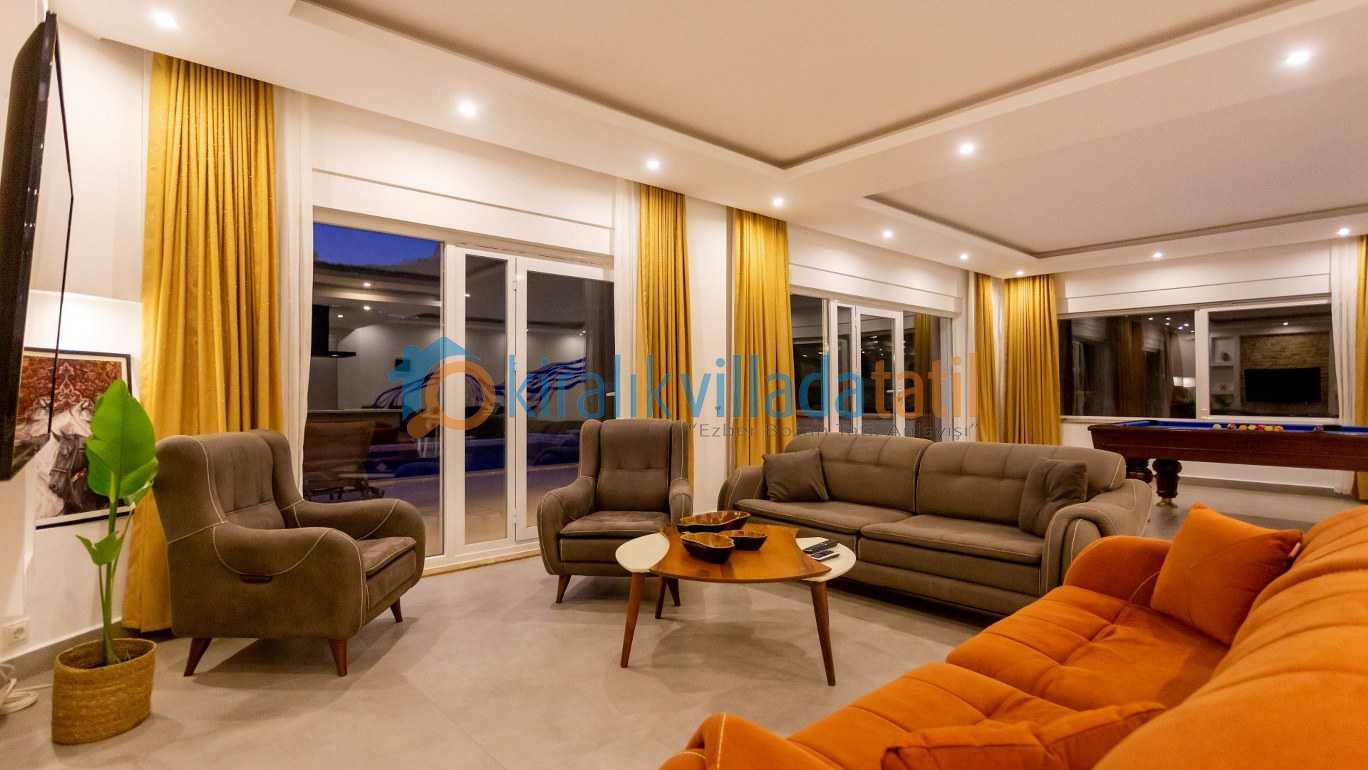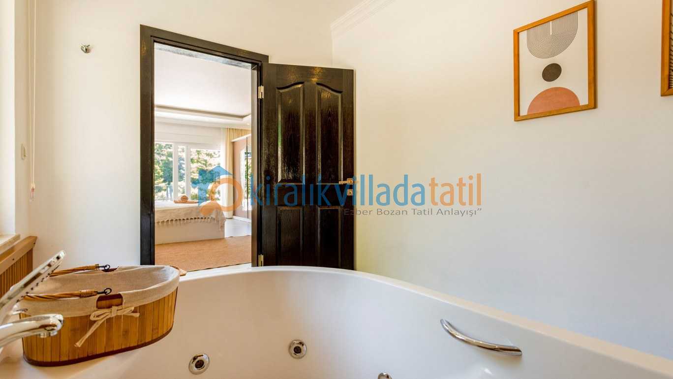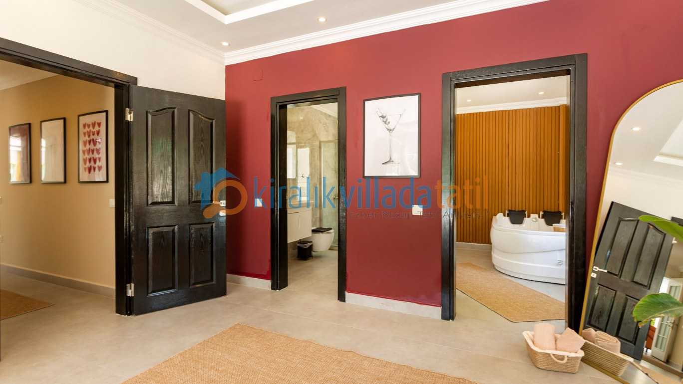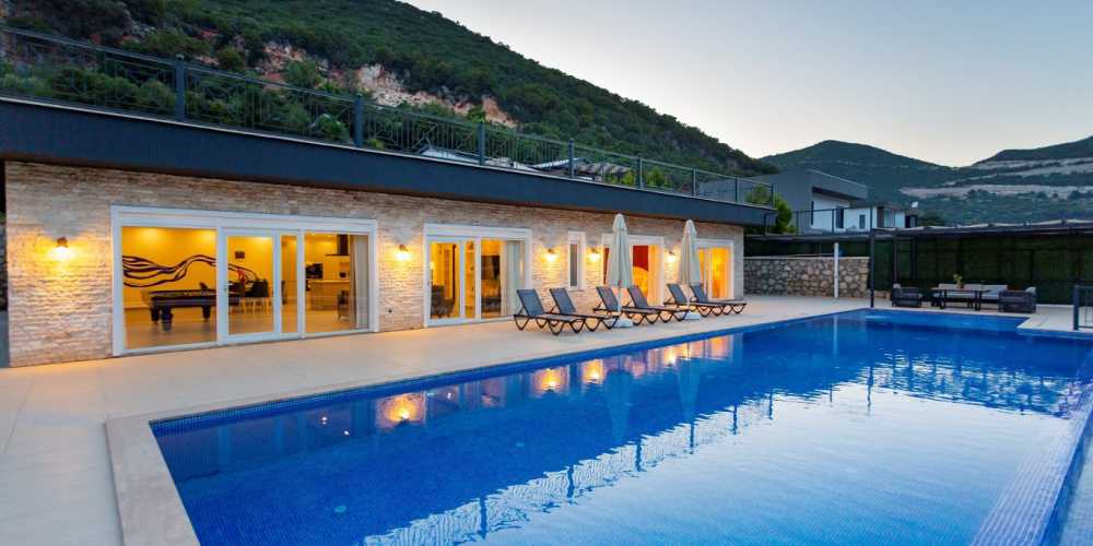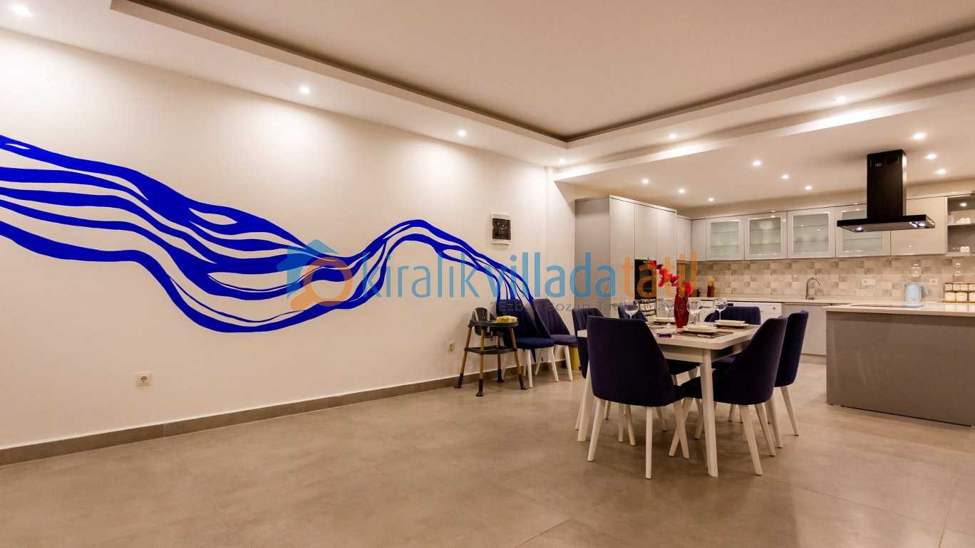 Yarı olimpik ölçülere yakın özel yüzme havuzu, gün boyu keyifli vakit geçirmenize olanak tanırken jakuzili özel spa alanı ve bilardo masası gibi detaylar tatilinize ekstra konfor ve eğlence katıyor İç mekânda modern ve kullanışlı bir dizayn tercih edilmiş; tam donanımlı mutfak, konforlu yataklar ve ferah yaşam alanları ile misafirlerin ihtiyaçları düşünülmüş.