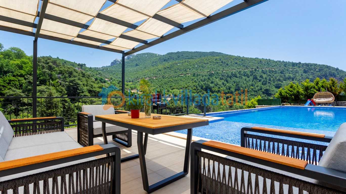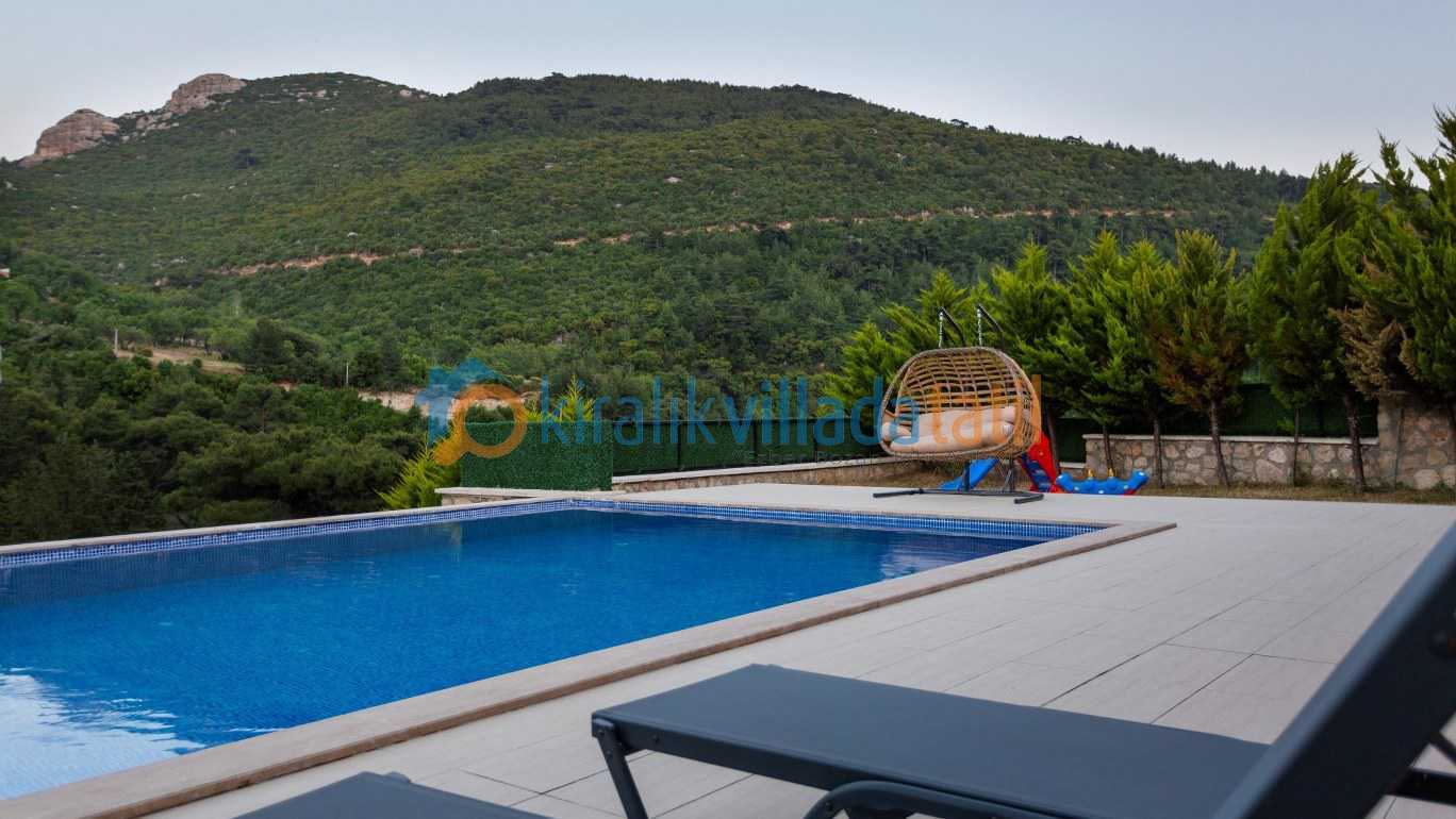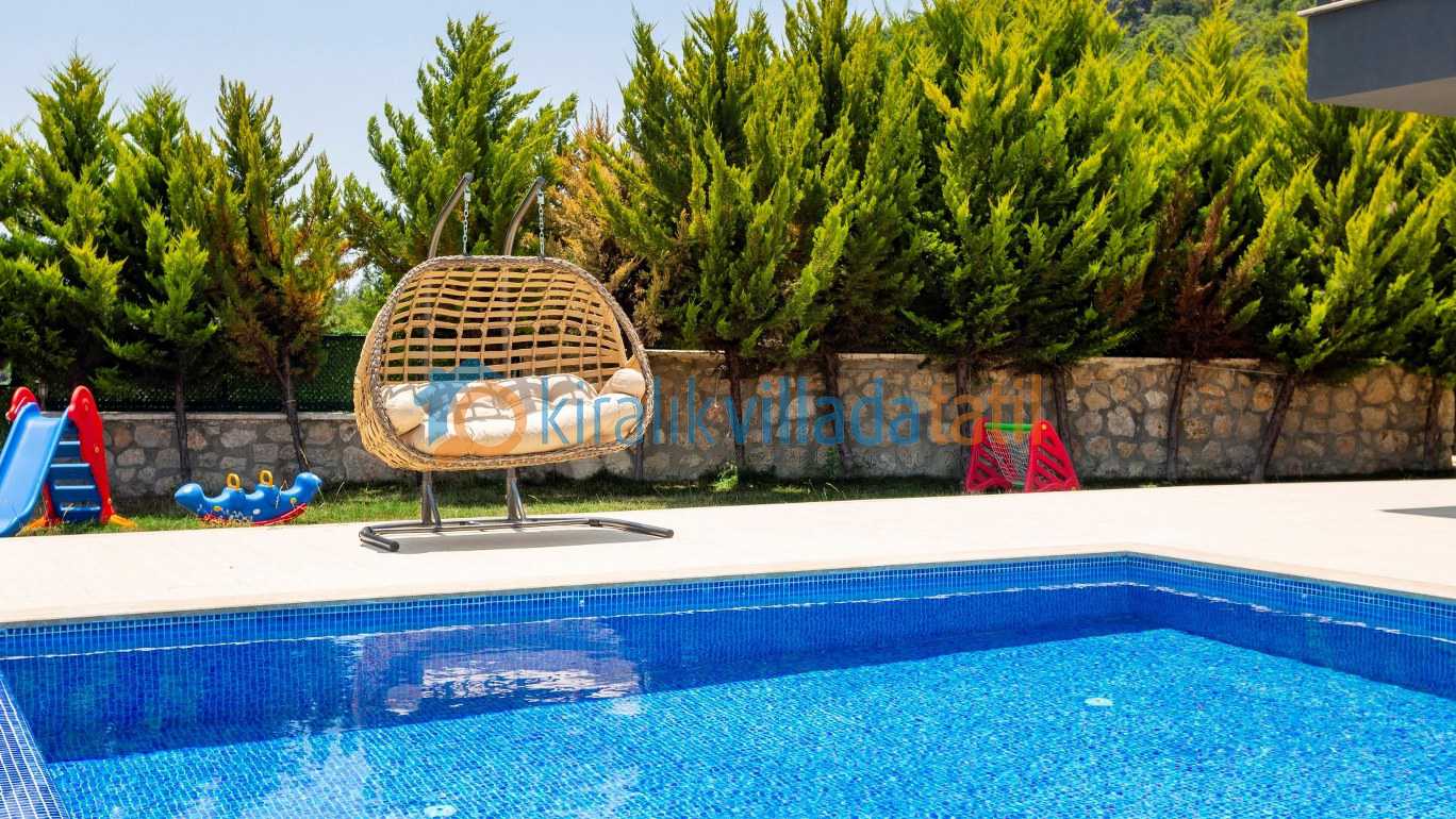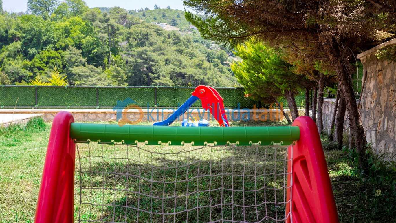 Geniş ve yeşil bahçe alanı özellikle çocuklu aileler için büyük avantaj sağlar. Bahçede yer alan oyun alanları sayesinde küçük misafirler de tatilin tadını özgürce çıkarabilir Aynı zamanda villanın merkeze araçla yaklaşık 10 dakika mesafede bulunması, doğa içinde huzurlu bir konumda konaklarken şehir olanaklarına da kolayca ulaşabilmenizi sağlar