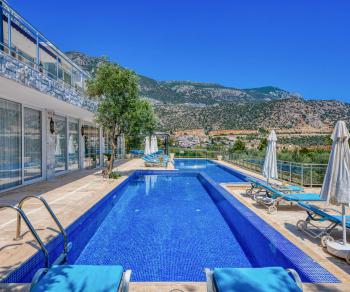 Deniz manzaralı, merkeze yakın, geniş havuzlu ve modern donanımlı bu villa; Kalkan’da lüks ve konforlu bir tatil arayan misafirler için kusursuz bir tercihtir.
