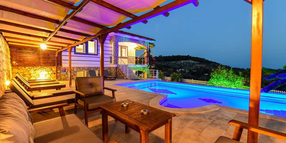 . Villamız, Patara Plajı’na 8 km, Kalkan merkeze ise 25 km uzaklıktadır. Konforlu bir ulaşım sağlamak adına özel araçla gelmenizi tavsiye ederiz. HAVUZ TERASI: Geniş yüzme havuzunun yanı sıra yemek masası ve sandalyeler, bahçe oturma grubu, barbekü alanı, güneş şemsiyesi ve şezlonglar bulunmaktadır.