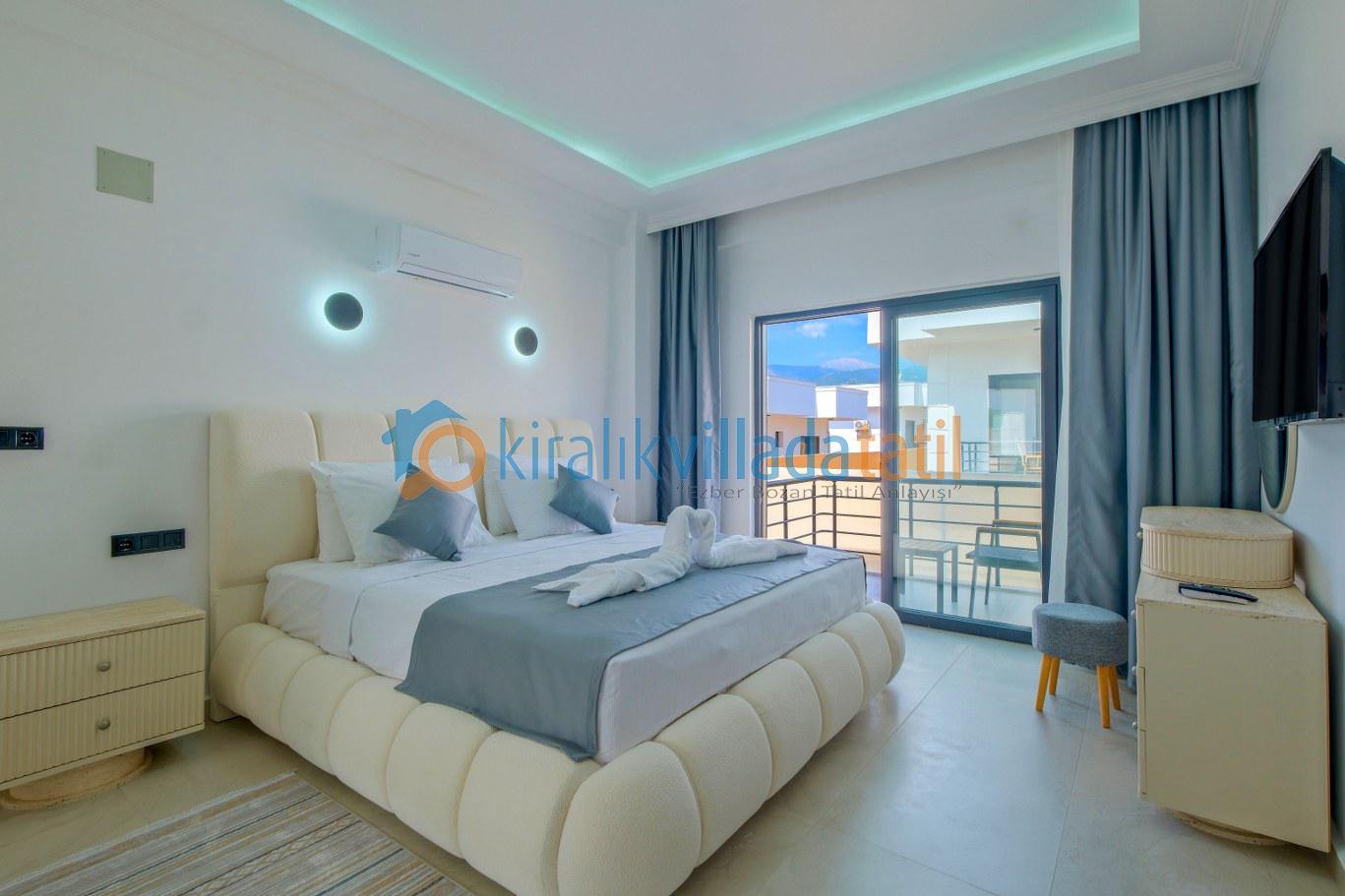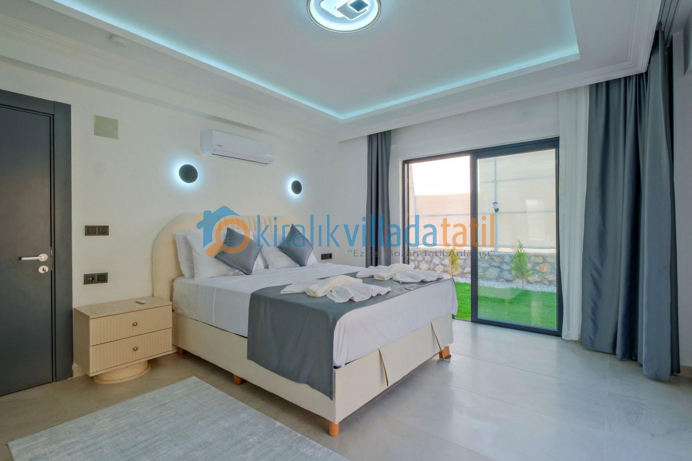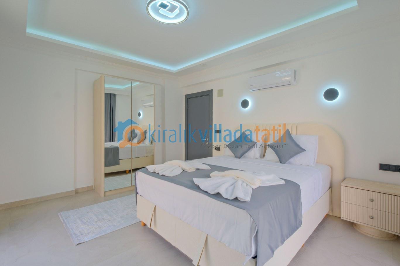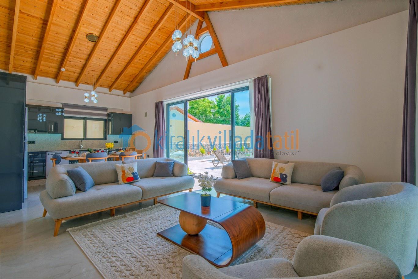 Modern ve kullanışlı detaylarla tasarlanan iç mekân; ferah bir salon, tam donanımlı mutfak, rahat yatak odaları ve ihtiyaç duyabileceğiniz tüm temel ekipmanları barındırmaktadır. Sekiz kişilik konaklama kapasitesiyle hem kısa süreli konaklamalarda hem de uzun tatil planlarında yüksek konfor sunan bu kiralık villa, ev rahatlığını tatil konseptiyle birleştirir.