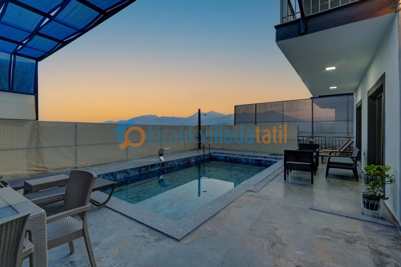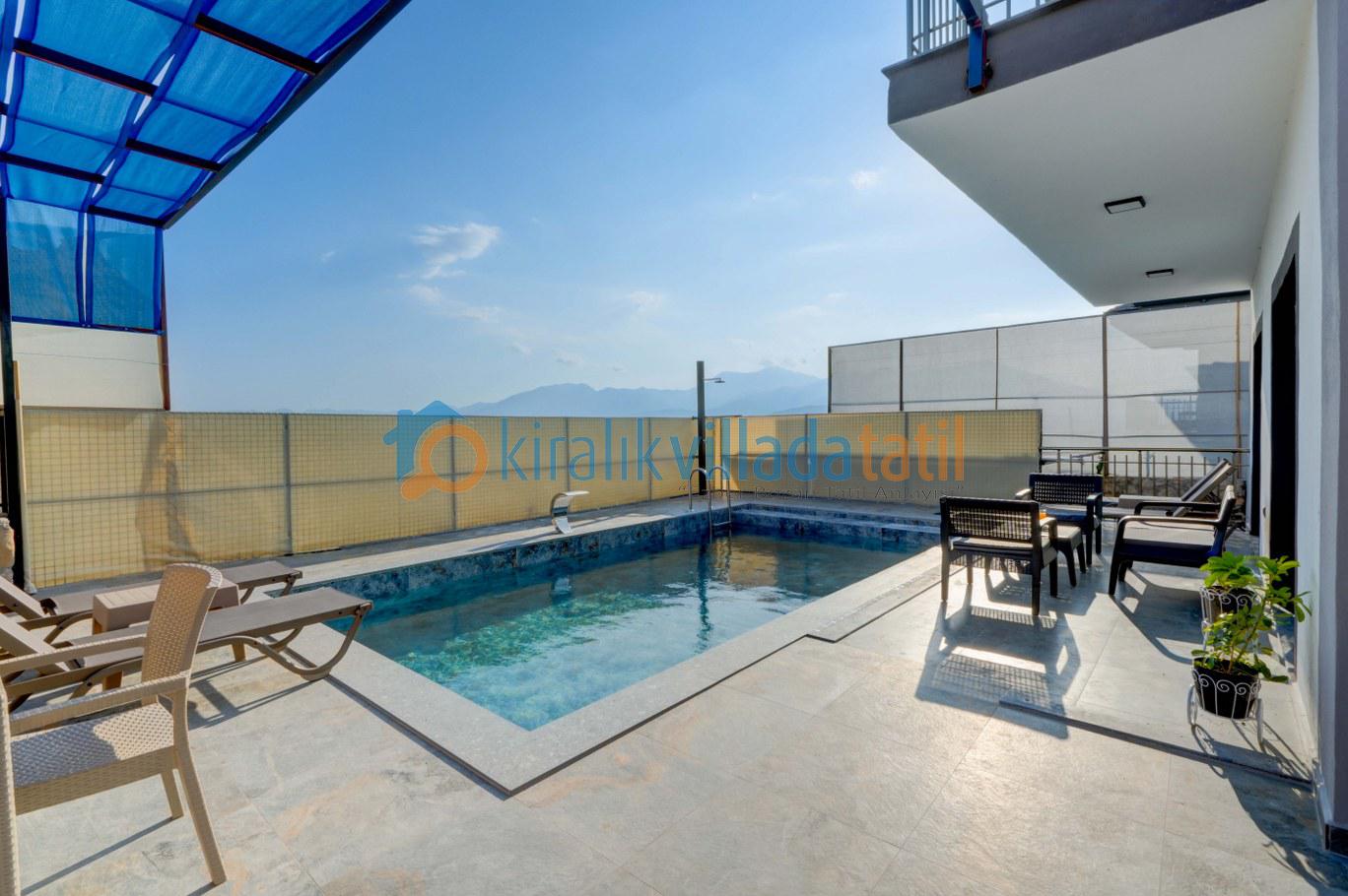 Tamamen korunaklı havuzu ve geniş bahçesiyle dikkat çeken villamız, muhafazakâr aileler ve balayı çiftleri için idealdir. Havuz etrafı perde sistemiyle kapatılarak dışarıdan görünmeyecek şekilde düzenlenmiştir. Böylece dilediğinizce yüzebilir, güneşlenebilir ve villada tatil keyfini huzur içinde yaşayabilirsiniz.