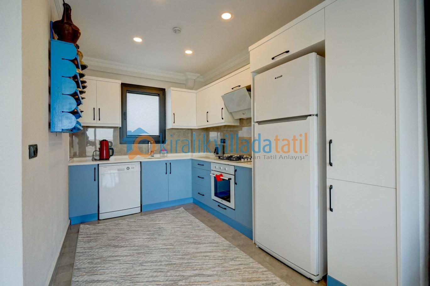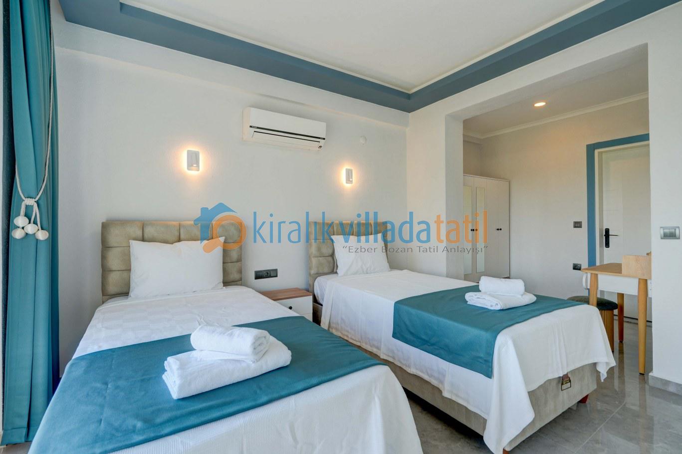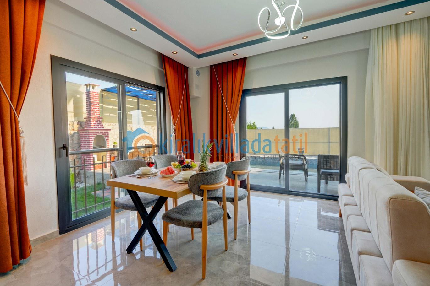Villamız 2 yatak odalı olup, 4 kişilik konaklama kapasitesine sahiptir. Modern oturma alanı, tam donanımlı mutfak ve ev konforunu aratmayan tüm ekipmanlarıyla misafirlerine rahat bir konaklama imkânı sunar.