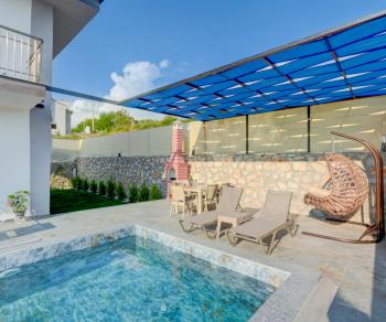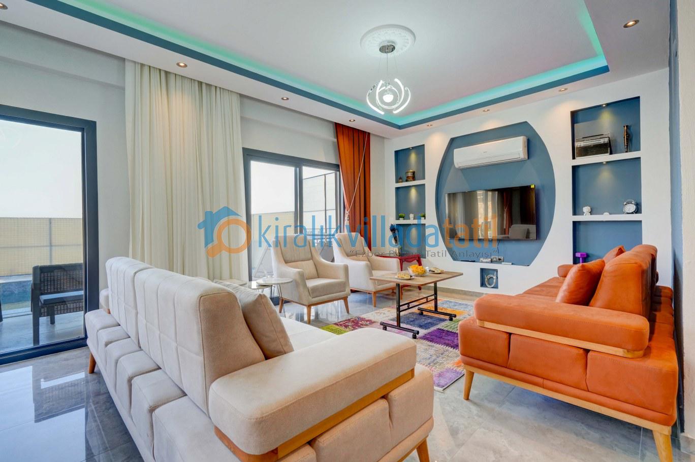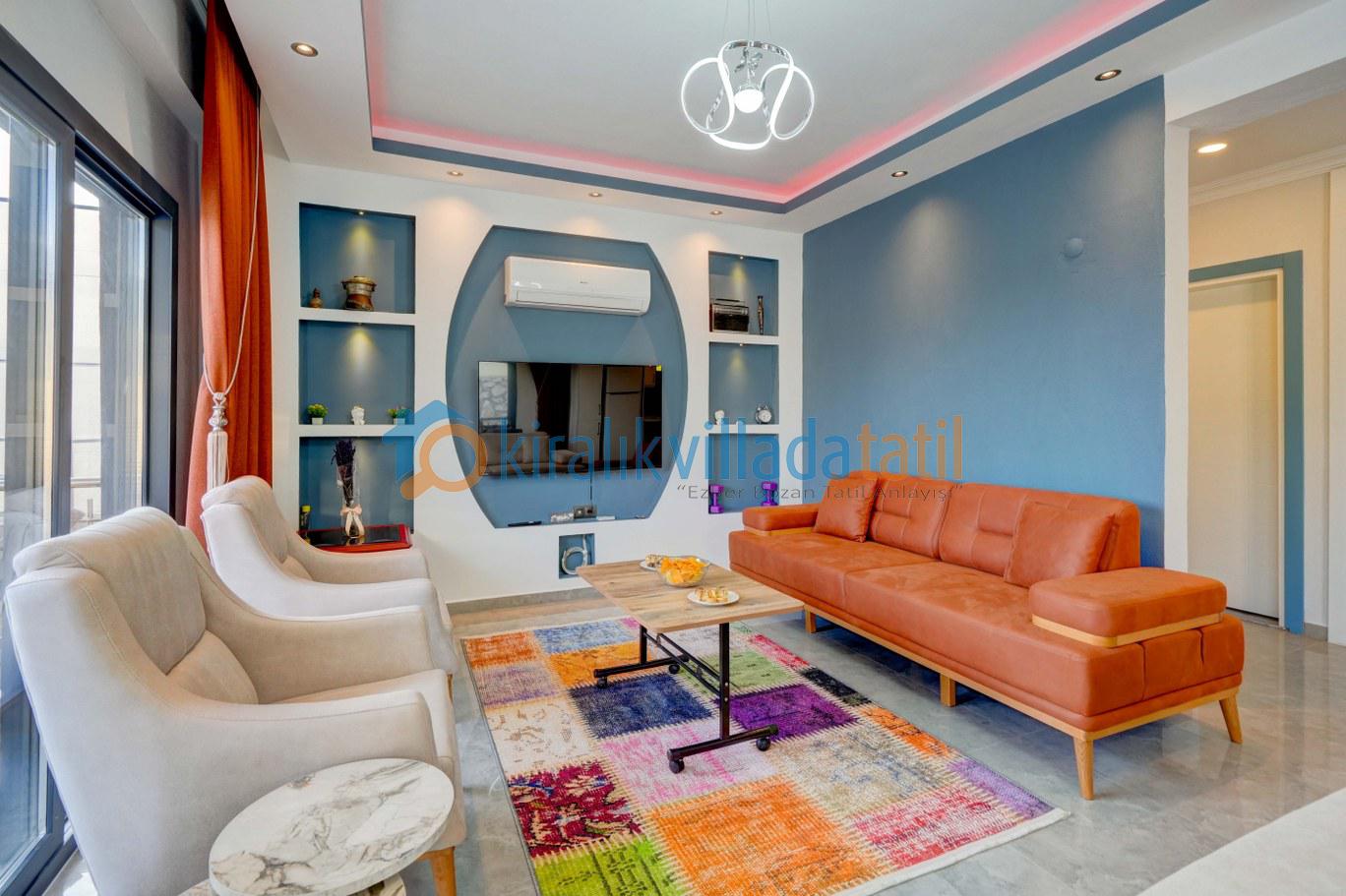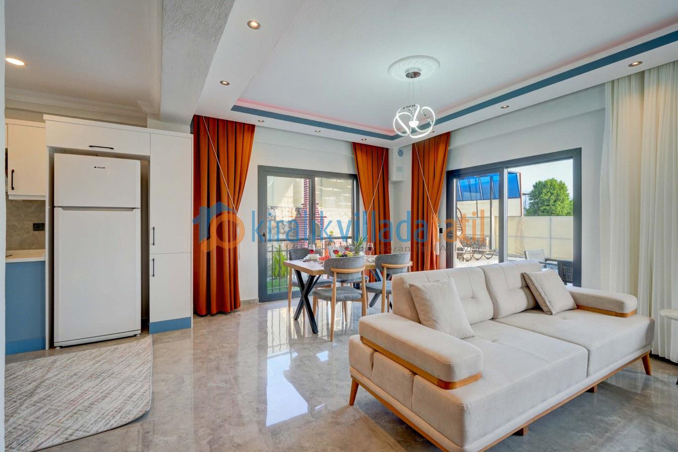 Villamız 2 yatak odalı olup, 4 kişilik konaklama kapasitesine sahiptir. Modern oturma alanı, tam donanımlı mutfak ve ev konforunu aratmayan tüm ekipmanlarıyla misafirlerine rahat bir konaklama imkânı sunar.