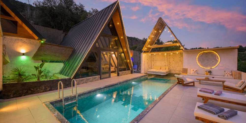 Doğanın huzurunu ve modern bungalov mimarisini bir arada sunan bu özel kiralık villa, Kalkan’ın Eşen bölgesinde yer almakta olup korunaklı havuzu ve iki ayrı yaşam birimiyle misafirlerine farklı bir tatil deneyimi sunar.
