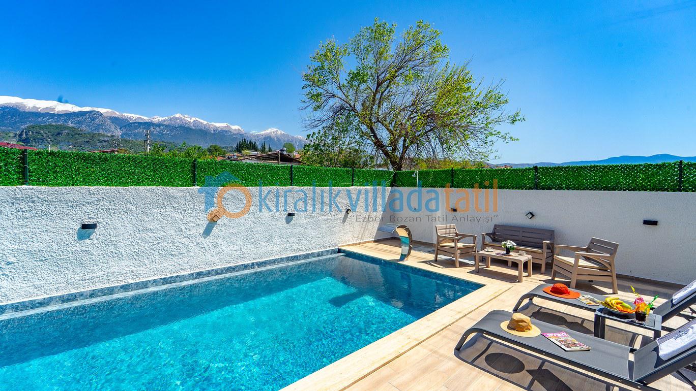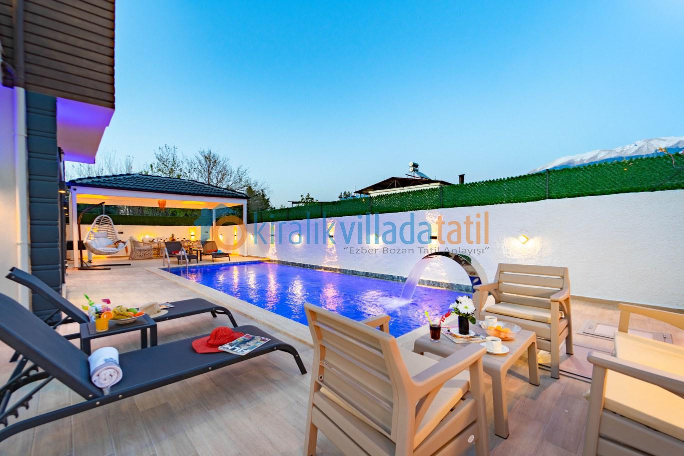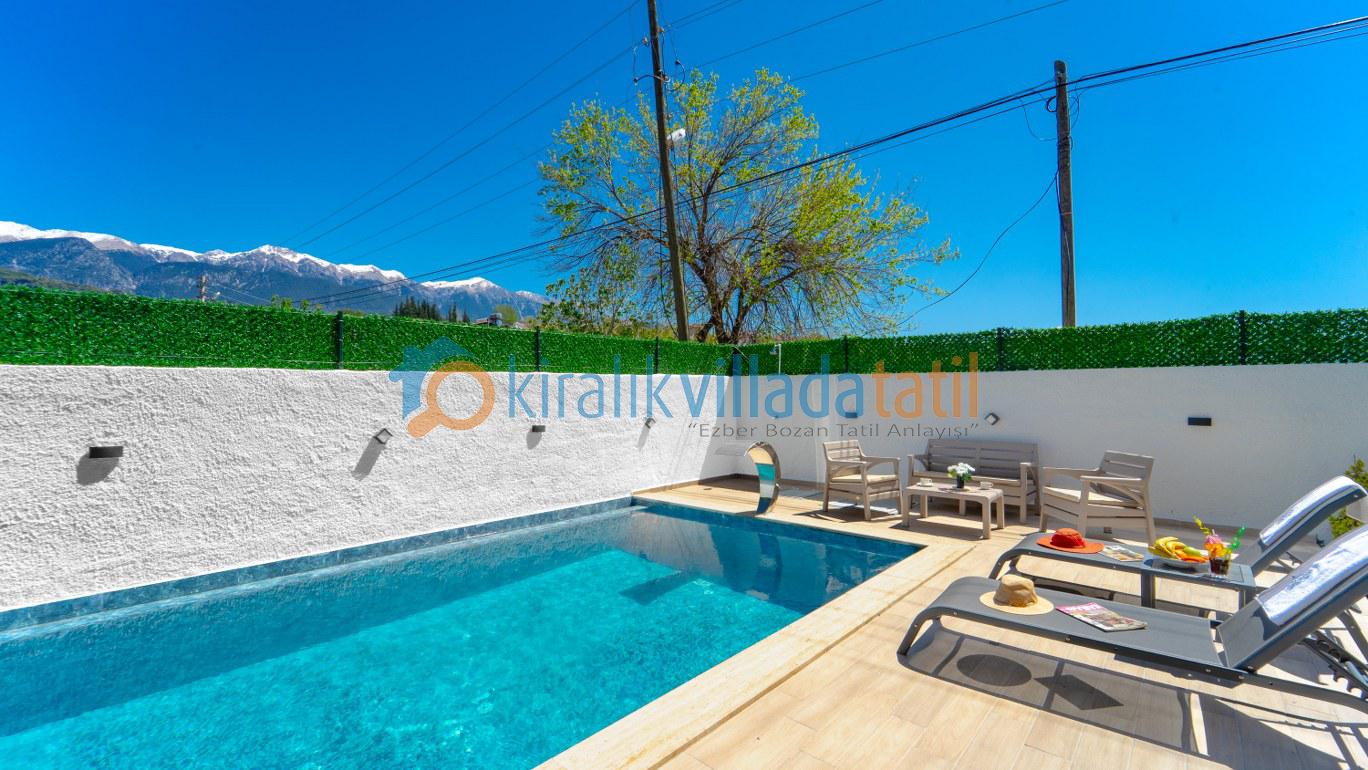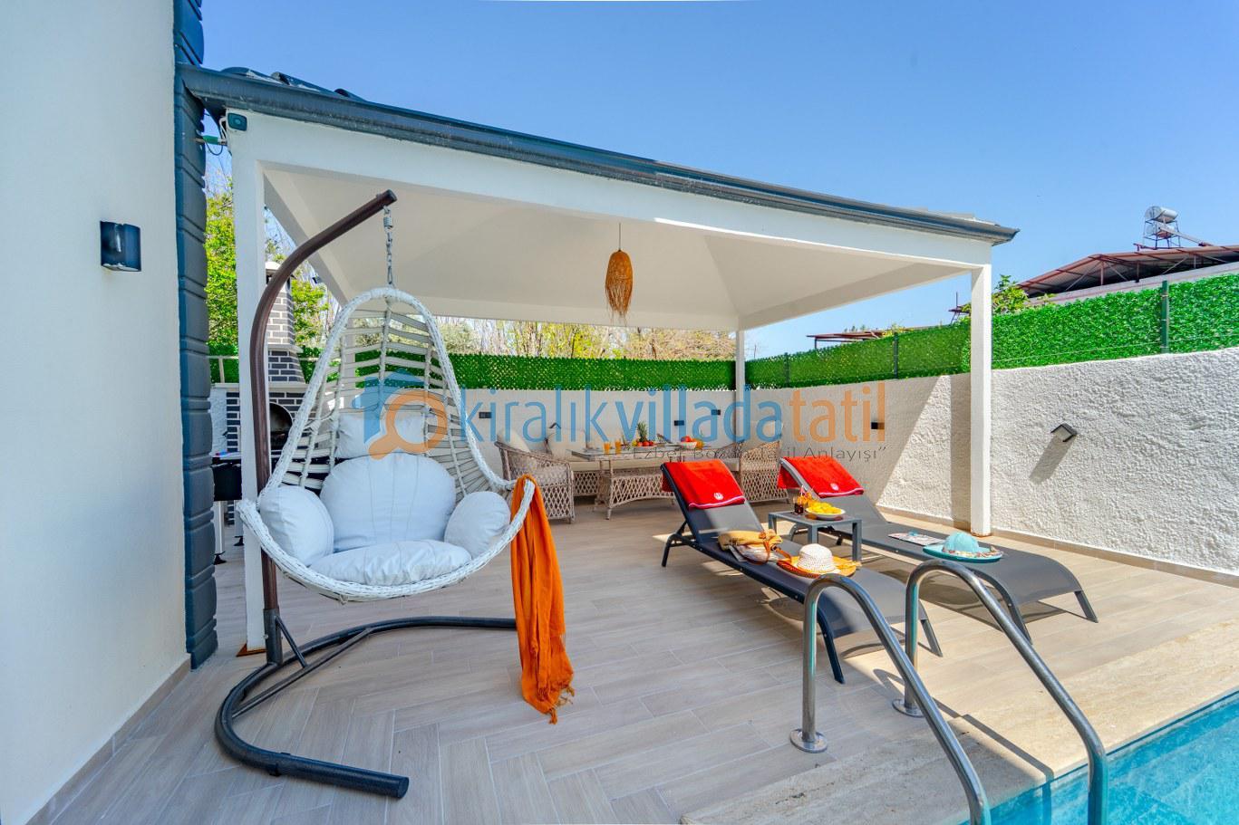 Bu ilan ait Detaylı açıklama ve bilinmesi gereken detaylarFethiye’nin doğal yapısıyla öne çıkan Seydikemer bölgesinde, doğa içerisinde konumlandırılmış bu özel yüzme havuzlu kiralık tatil villası; mahremiyet, konfor ve fonksiyonelliği bir arada sunan nitelikli bir konaklama alternatifidir. Tamamen size özel havuz alanına sahip olan villa; muhafazakâr villa, jakuzili villa ve doğa içinde villa konseptlerinde değerlendirilen, modern yaşam standartlarına uygun şekilde tasarlanmış seçkin bir yapıdır.
