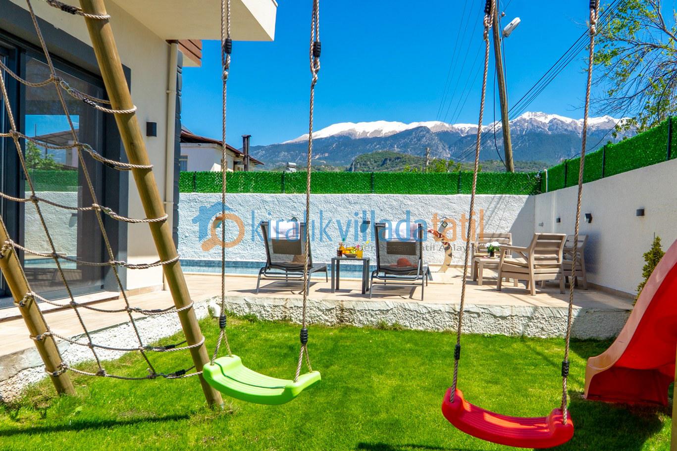 Villada yer alan çocuk oyun parkı, aileler için önemli bir avantaj sağlayarak hem yetişkinler hem de çocuklar için keyifli bir tatil ortamı oluşturur. Doğayla iç içe, sakin ve izole bir lokasyonda yer alan villa; şehir kalabalığından uzak, huzurlu bir tatil arayan misafirler için güçlü bir alternatiftir. Aynı zamanda denize yaklaşık 35 km mesafede bulunması sayesinde hem doğa tatili hem de bölgedeki plajlara ulaşım imkânı bir arada sunulmaktadır.