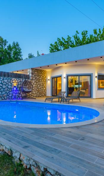 Villanın özel yüzme havuzu, sıcak yaz günlerinde serinlemeniz için harika bir olanak sunar. Havuzun etrafındaki şezlonglar, güneşlenmek ve dinlenmek için idealdir. Ayrıca, villanın geniş terasında akşamüstü çayınızı veya kahvenizi yudumlayabilir, gün batımının tadını çıkarabilirsiniz. Doğa manzarası eşliğinde romantik akşam yemekleri için teras mükemmel bir atmosfer sunar.